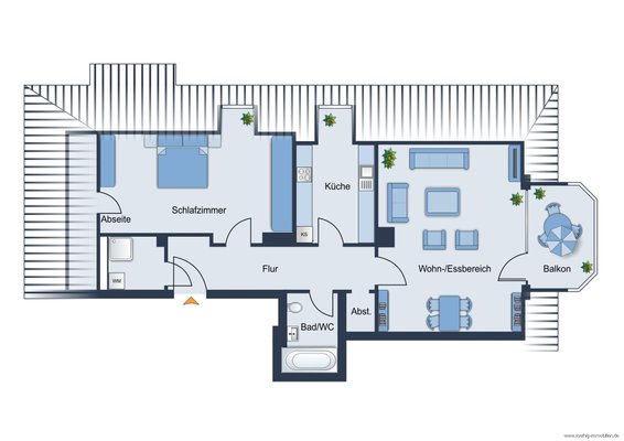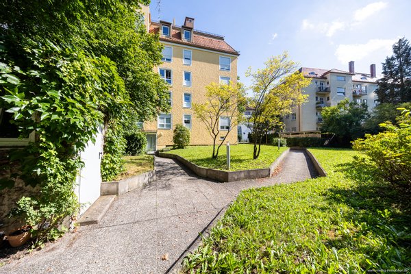 Ein charmanter Anwohnerweg durch den Innenhof führt Sie an blühenden Wiesen vorbei zum hellen Treppenhaus des gepflegten Hauses. Ihr neues Zuhause befindet sich im Dachgeschoss (2. Obergeschoss) und bietet Ihnen, mit nur einer weiteren Wohnung auf dieser Etage, reichlich Privatsphäre.