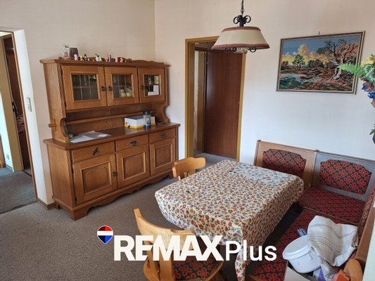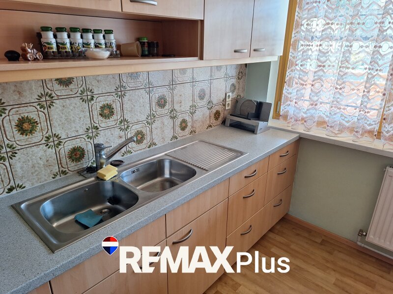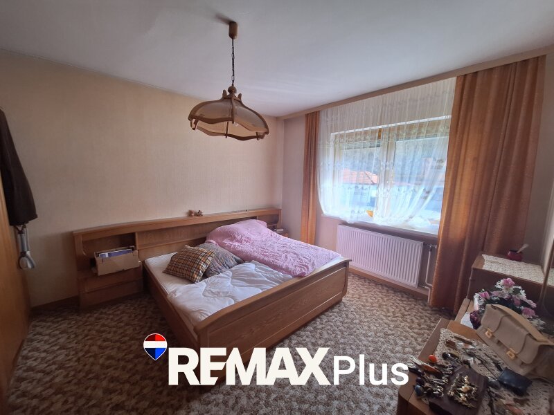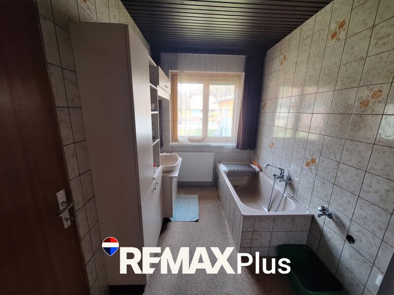 Über eine überdachte Außentreppe gelangt man zur Hauseingangstür. Unter der Treppe ist Platz für Mülltonnen oder Ähnliches. Beim Betreten des Hauses empfängt ein Vorraum, der sich ideal als Garderobe nutzen lässt. Von hier gelangt man links in einen kleinen Vorraum, der Zugang zur Treppe in den Keller, zum WC und zum Badezimmer mit Dusche, Badewanne und Fenster bietet. Beide Räume verfügen über ein Fenster. Geradeaus vom Vorraum führt ein Flur zu den drei Zimmern des Hauses. Das erste Zimmer auf der linken Seite eignet sich hervorragend als Kinderzimmer oder Arbeitszimmer, das zweite als gemütliches Schlafzimmer und das dritte, etwas kleinere Zimmer am Ende des Flurs kann als Büro, Hobbyraum oder Gästezimmer genutzt werden. Alle drei Räume verfügen über große Fenster und sind lichtdurchflutet. Rechts vom Vorraum öffnet sich das Wohnzimmer mit einem Holz-Wandverbau und einem großen Fenster mit drei Flügeln. Von hier gelangt man direkt auf die geräumige Terrasse. Über offene Durchgänge ist das Wohnzimmer mit dem Essbereich verbunden, der über eine Eckbank verfügt, und weiter zur vollmöblierten Küche. Der Keller bietet mehrere Räume für Stauraum, einen Heizraum und den direkten Zugang zur Garage, die ausreichend Platz für ein Fahrzeug bietet.