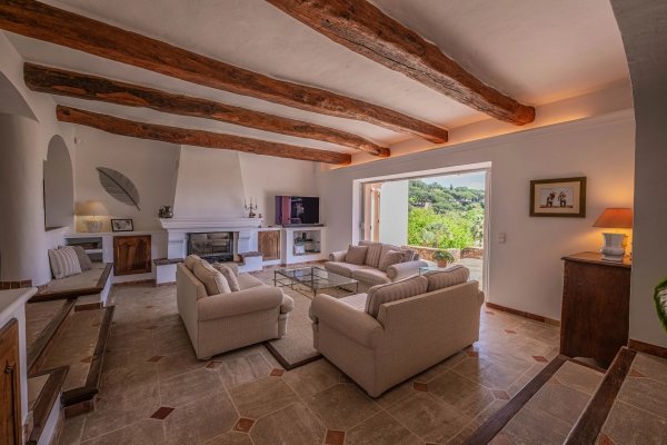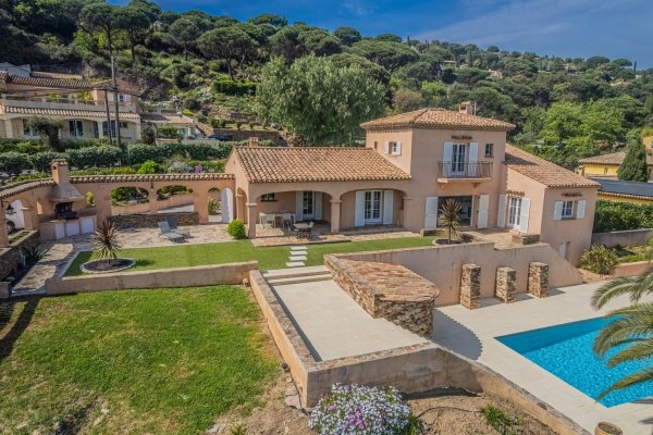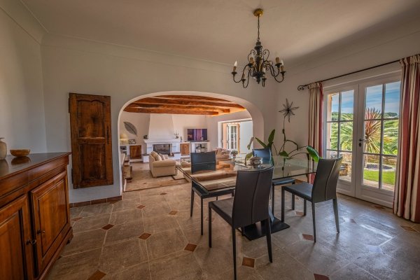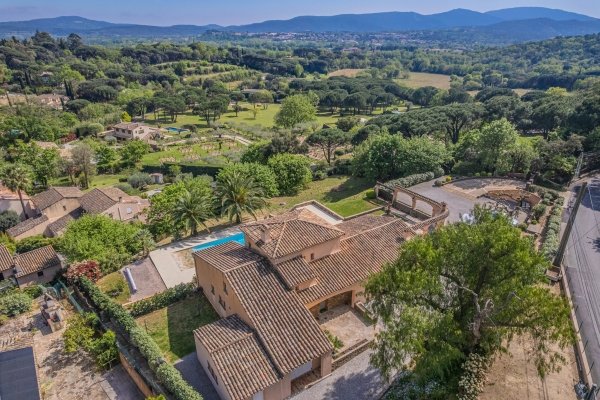 Nur einen Steinwurf vom Schloss und dem alten Dorf Grimaud entfernt bietet dieses charaktervolle Bauernhaus von etwa 180 m² außergewöhnliche Panoramablicke. Das Grundstück liegt auf 3.100 m² eingezäuntem Grundstück und verbindet provenzalischen Charme mit zeitgemäßem Komfort.