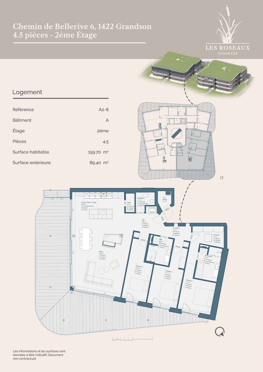 Mit attraktiven Preisen für die 2,5 Stück und flexiblen Individualisierungsoptionen für die 3,5, 4,5 und 6,5 Stück bietet Les Roseaux Ihnen Lösungen, die auf Ihre Bedürfnisse und Ihr Budget zugeschnitten sind. Egal, ob Sie Ihre Hauptwohnung, ein Pied-à-terre oder eine hochwertige Investition suchen, Les Roseaux wird Ihre Erwartungen erfüllen.