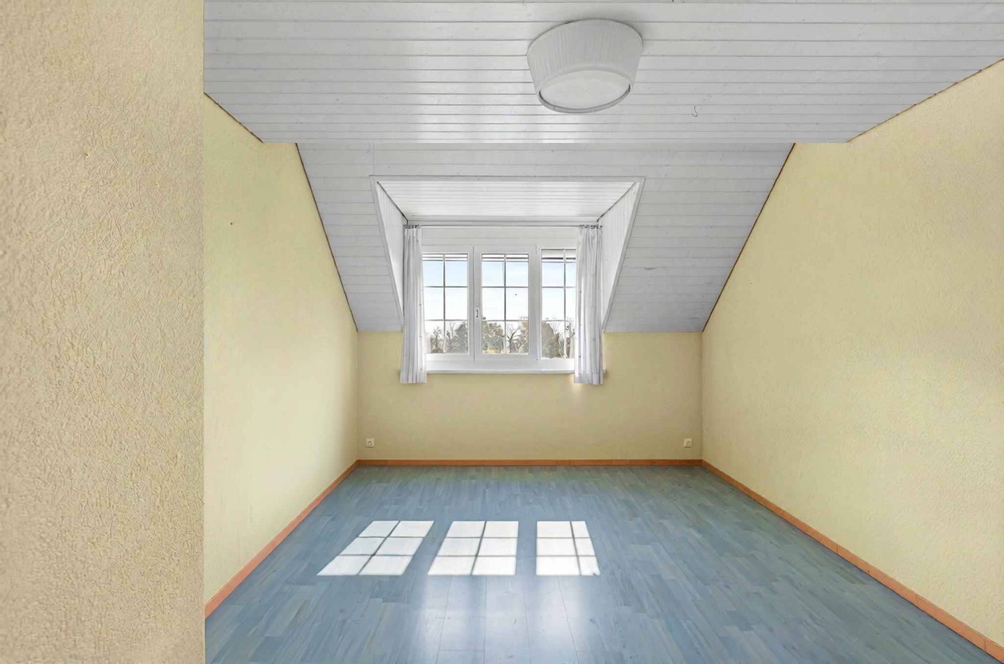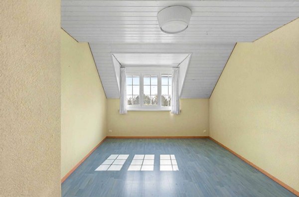 Der Dachboden wurde in ein angenehmes Spielzimmer/Fernsehzimmer umgewandelt, das von zwei Fenstern profitiert, die ein schönes Licht bieten.