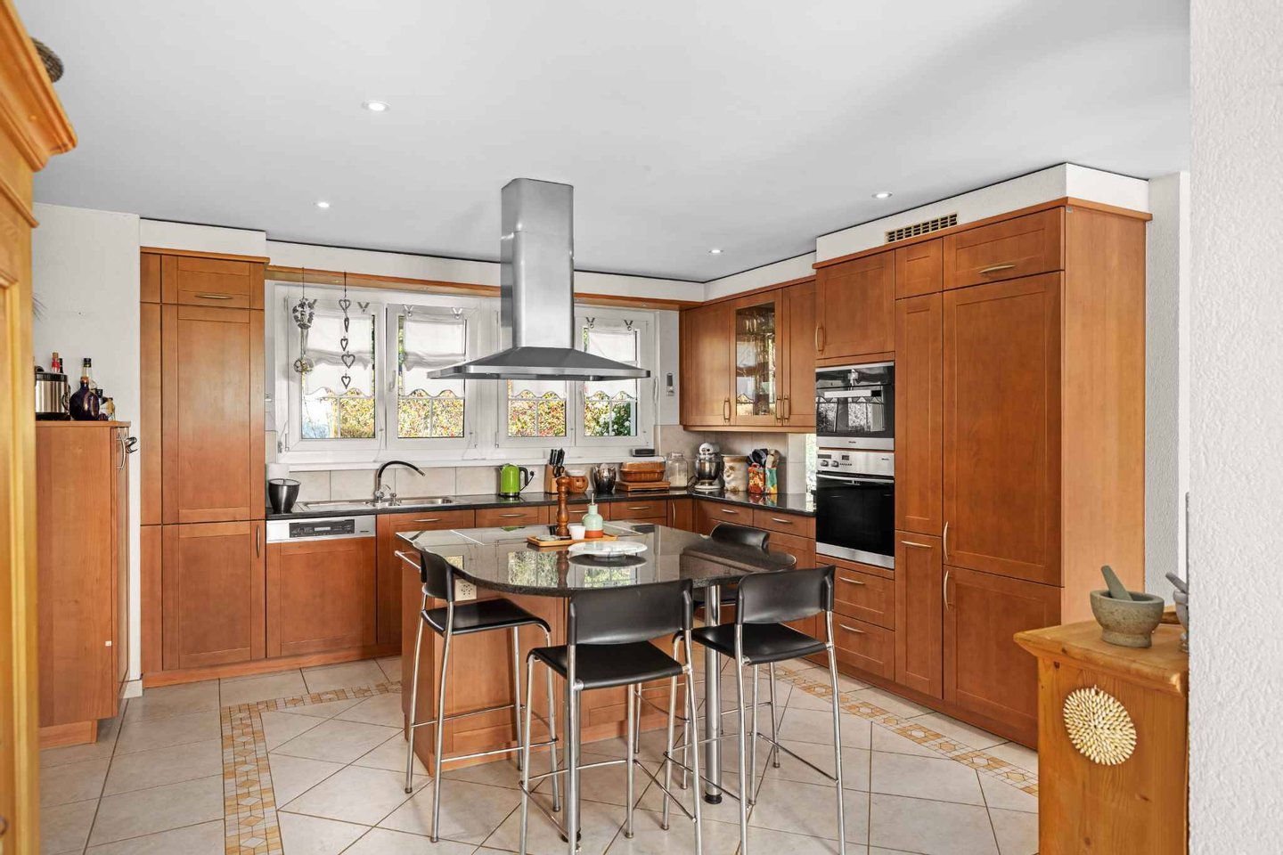 Auf einem Grundstück von 1.500 m² errichtet, bietet das Anwesen einen friedlichen Blick auf die Alpen und bietet etwa 240 m² Wohnfläche, ergänzt durch einen umgebauten Dachboden und einen Keller.
