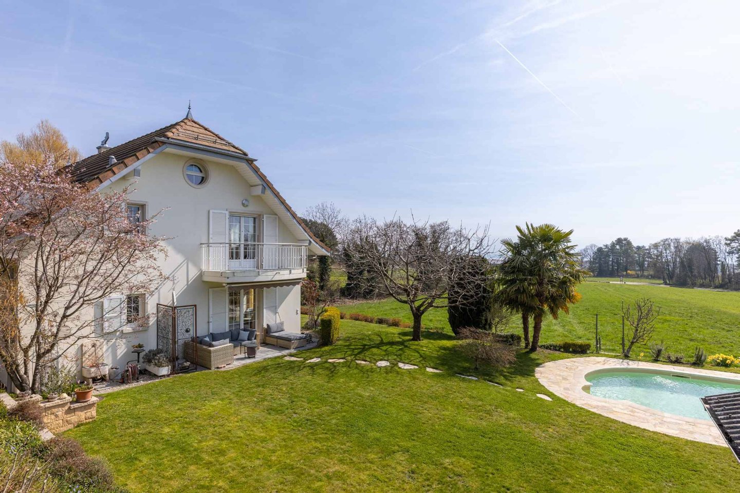 Auf einem Grundstück von 1.500 m² errichtet, bietet das Anwesen einen friedlichen Blick auf die Alpen und bietet etwa ...mehr lesen