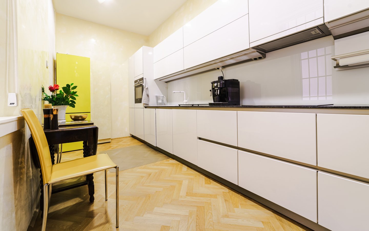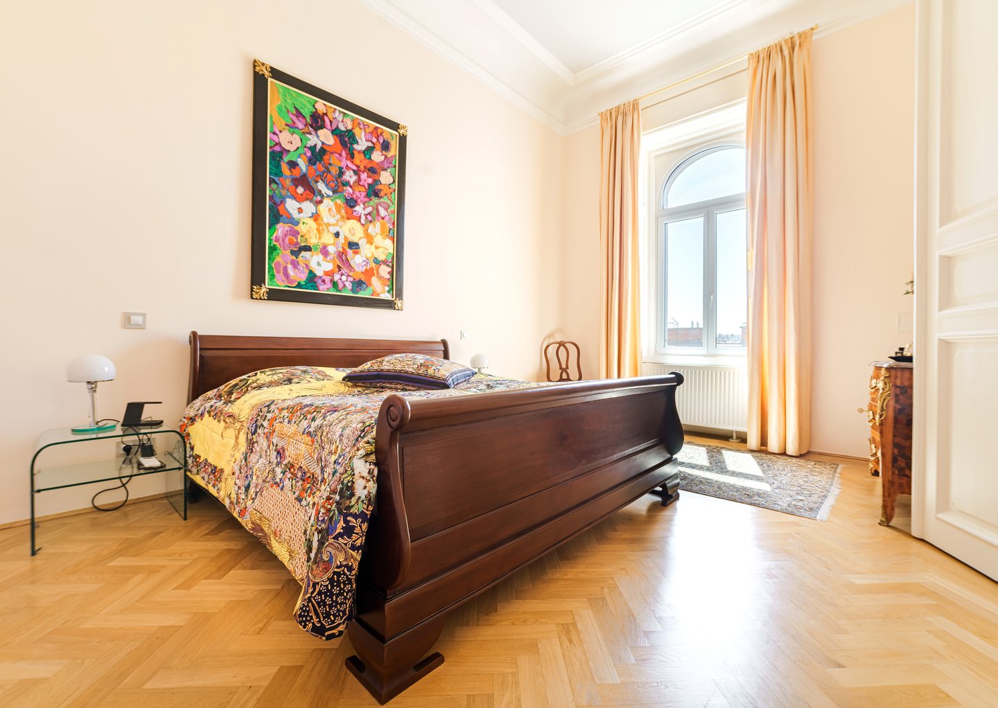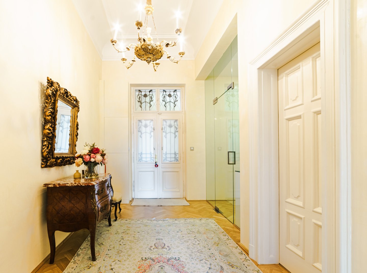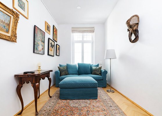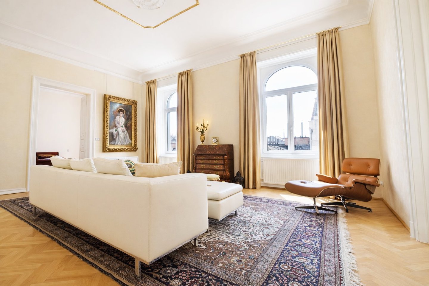 Die Zimmer werden den ganzen Tag in Sonnenschein gebadet, sind nach Südosten ausgerichtet, mit einer Deckenhöhe von 3,8 Metern und verbinden klassische Eleganz mit modernster technologischer Lösung.