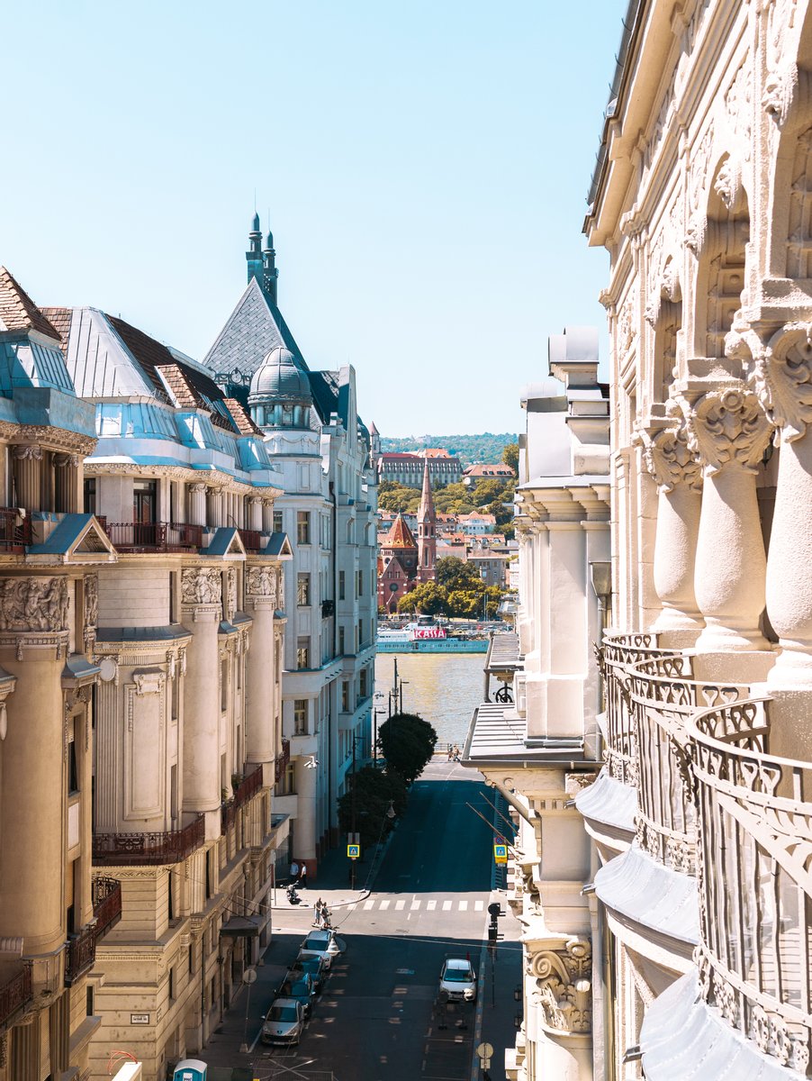 Die Wohnung befindet sich im 4. Stock des Gebäudes an der Ecke Nádor-Straße und Garibaldi-Straße. Dieser Abschnitt der Nádor-Straße ist einer der wertvollsten, am besten gepflegten und sichersten öffentlichen Räume Budapests. Die umfassende infrastrukturelle und ästhetische Erneuerung (dekorative Verkleidung, öffentliche Versorgungsleistungen) im Jahr 2019 garantiert langfristige Werterhaltung.
