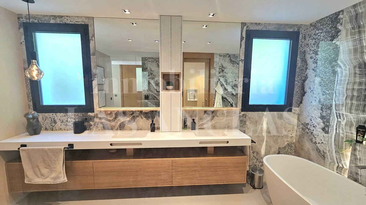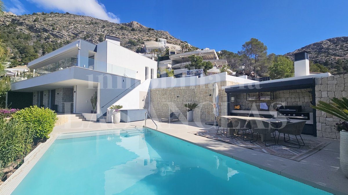 Diese zeitgenössische Villa in der exklusiven Urbanisation Altea Hills vereint modernen Komfort mit einem luxuriösen Lebensstil auf höchstem Niveau. Dank der Lage auf einem Doppelgrundstück genießen Sie hier absolute Privatsphäre. Da sich die Villa in einem der ruhigsten Abschnitte, abseits der Autobahn befindet, ist eine ungestörte Atmosphäre garantiert.