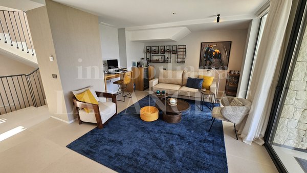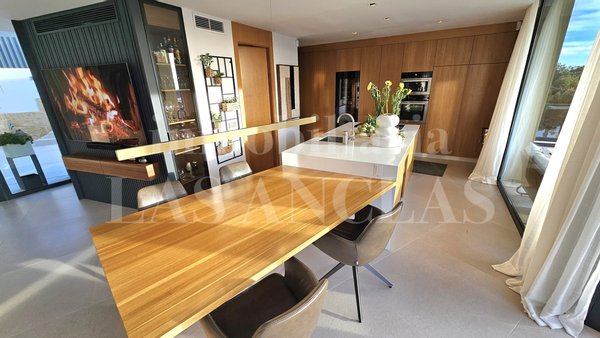 Diese lichtdurchflutete Villa offeriert ganzjährigen Komfort dank zentraler Klimaanlage, Fußbodenheizung und einem Warmwassersystem mit Aerothermie.