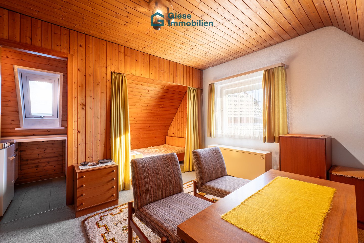Im Erdgeschoss verbinden drei Zimmer und ein Balkon den Innenbereich angenehm mit dem Garten. Im 1. Obergeschoss befindet sich eine aktuell vermietete 3-Zimmer-Einheit. Das Dachgeschoss wurde bereits als gemütlicher Gästebereich mit Bad sowie Koch- und Schlafmöglichkeit ausgebaut und bietet ebenfalls weiteres Ausbaupotenzial.