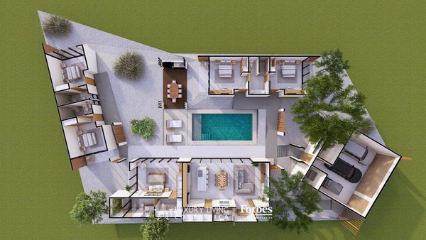 Das Herzstück dieses Hauses ist der offene Wohnbereich, in dem großflächige Glastüren das lebendige Grün und die erfrischende Meeresbrise einladen, Teil Ihres täglichen Lebens zu werden. Das Wohnzimmer, der Essbereich und die Gourmetküche gehen mühelos ineinander über und schaffen eine perfekte Umgebung für Unterhaltung und Entspannung.