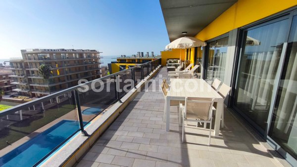 Das geräumige Wohnzimmer hat direkten Zugang zu einer außergewöhnlichen Terrasse mit Meerblick, dem perfekten Ort, um den Sonnenuntergang zu genießen oder Freunde und Familie in komfortabler Atmosphäre zu empfangen.