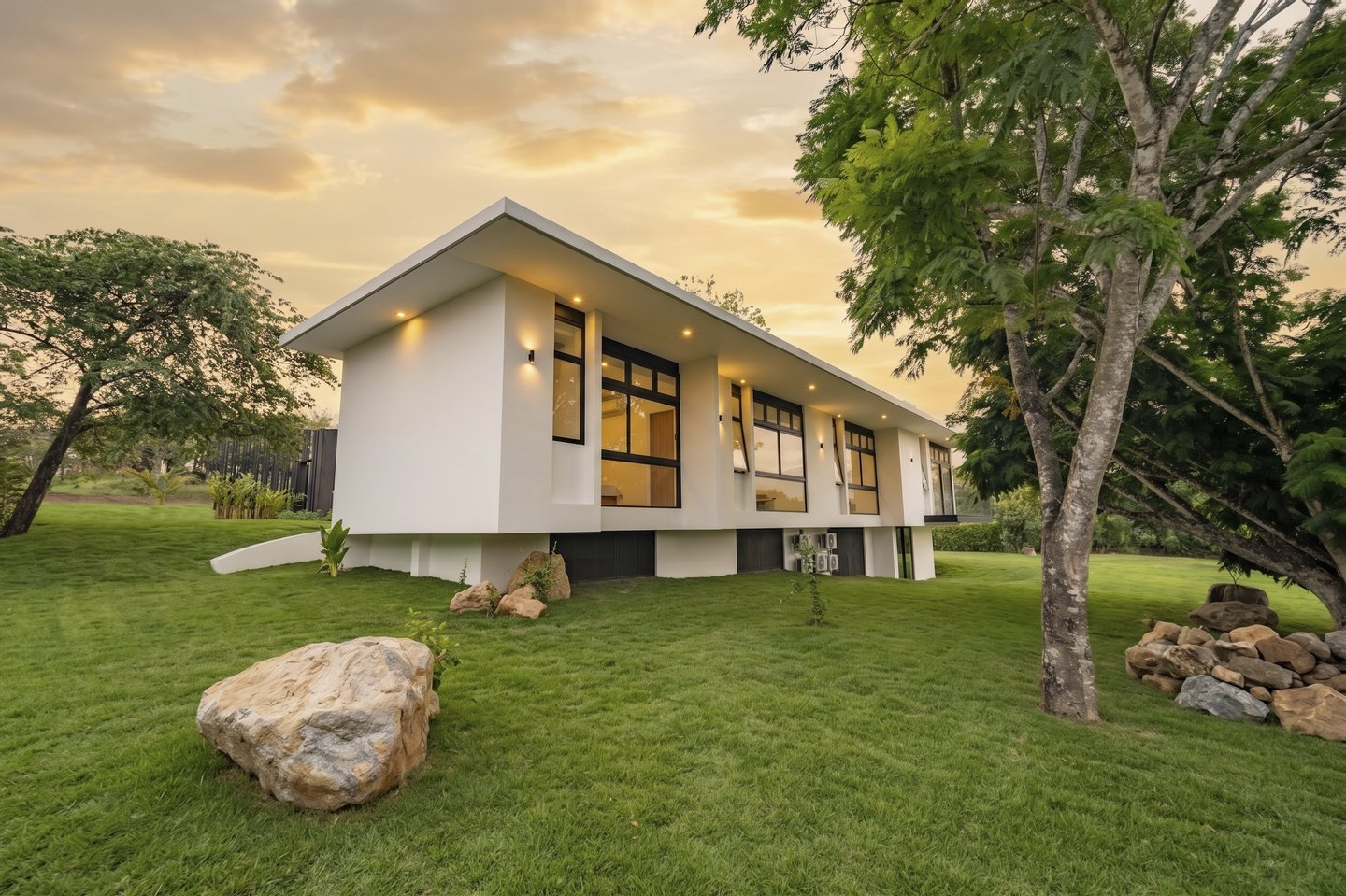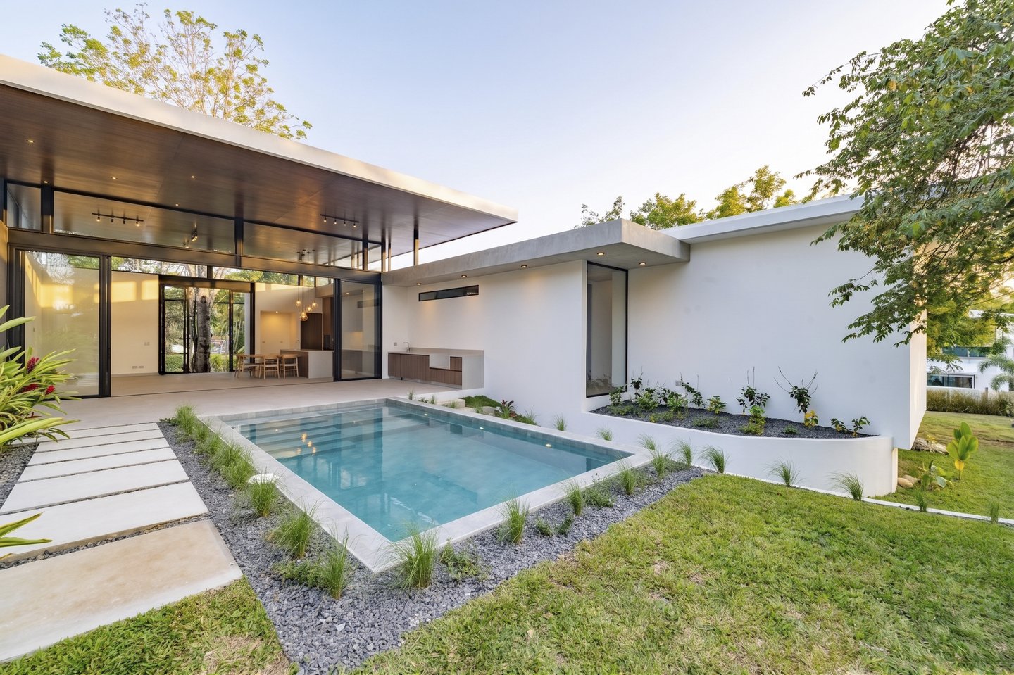 Casa Jardín liegt in der renommierten Gemeinde Hacienda Los Reyes und ist ein elegantes einstöckiges Wohnhaus, das zeitgenössische Architektur, natürliche Integration und gehobenes Wohnen verkörpert.