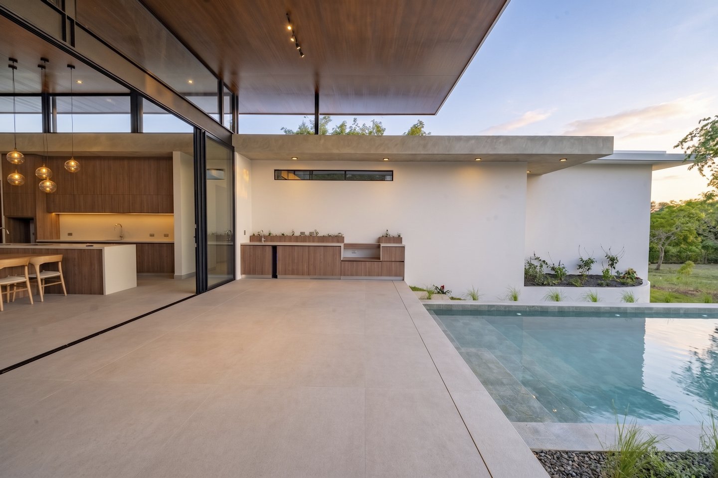 Derzeit im Bau und Lieferung für April 2026 geplant, wurde dieses Haus durchdacht gestaltet, um die Grenzen zwischen Innen- und Außenräumen zu verwischen. Weitläufige Wohnbereiche öffnen sich nahtlos zur Terrasse und einem solarbeheizten Pool, was eine flüssige Umgebung mit natürlichem Licht, Belüftung und einer starken Verbindung zur Umgebung schafft.