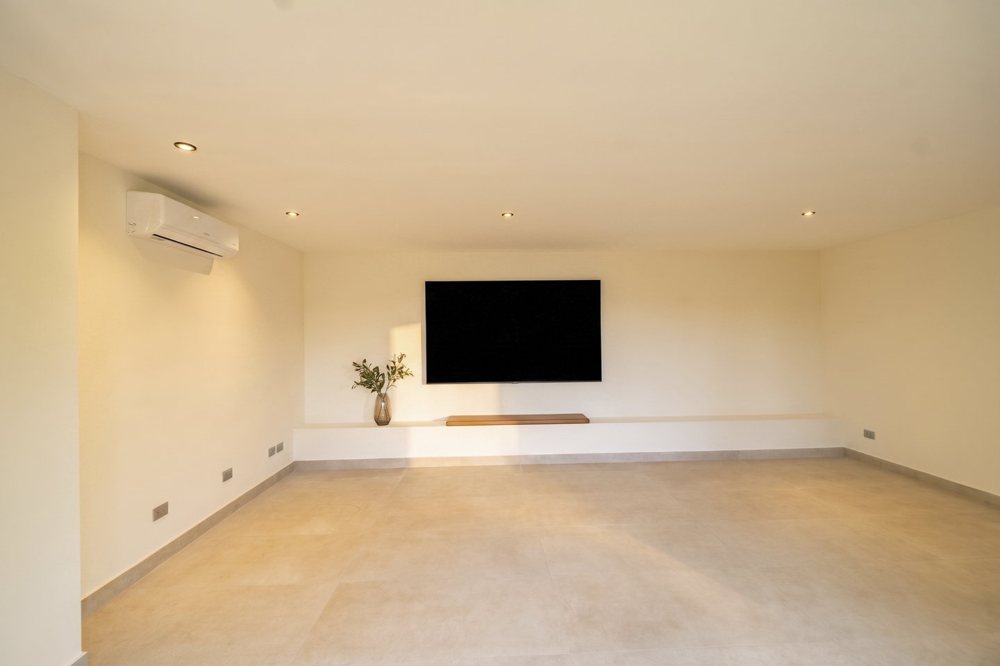 Die Residenz verfügt über vier private Schlafzimmersuiten, die jeweils ein eigenes Bad, begehbare Kleiderschränke und Klimaanlage bieten, was sowohl Komfort als auch Privatsphäre gewährleistet. Jeder Raum spiegelt eine sorgfältige Auswahl an Materialien und Oberflächen wider, darunter spanisches Porzellanboden, Caesarstone-Quarzoberflächen und Hansgrohe-Leuchten, die eine raffinierte und zeitlose Ästhetik bieten.