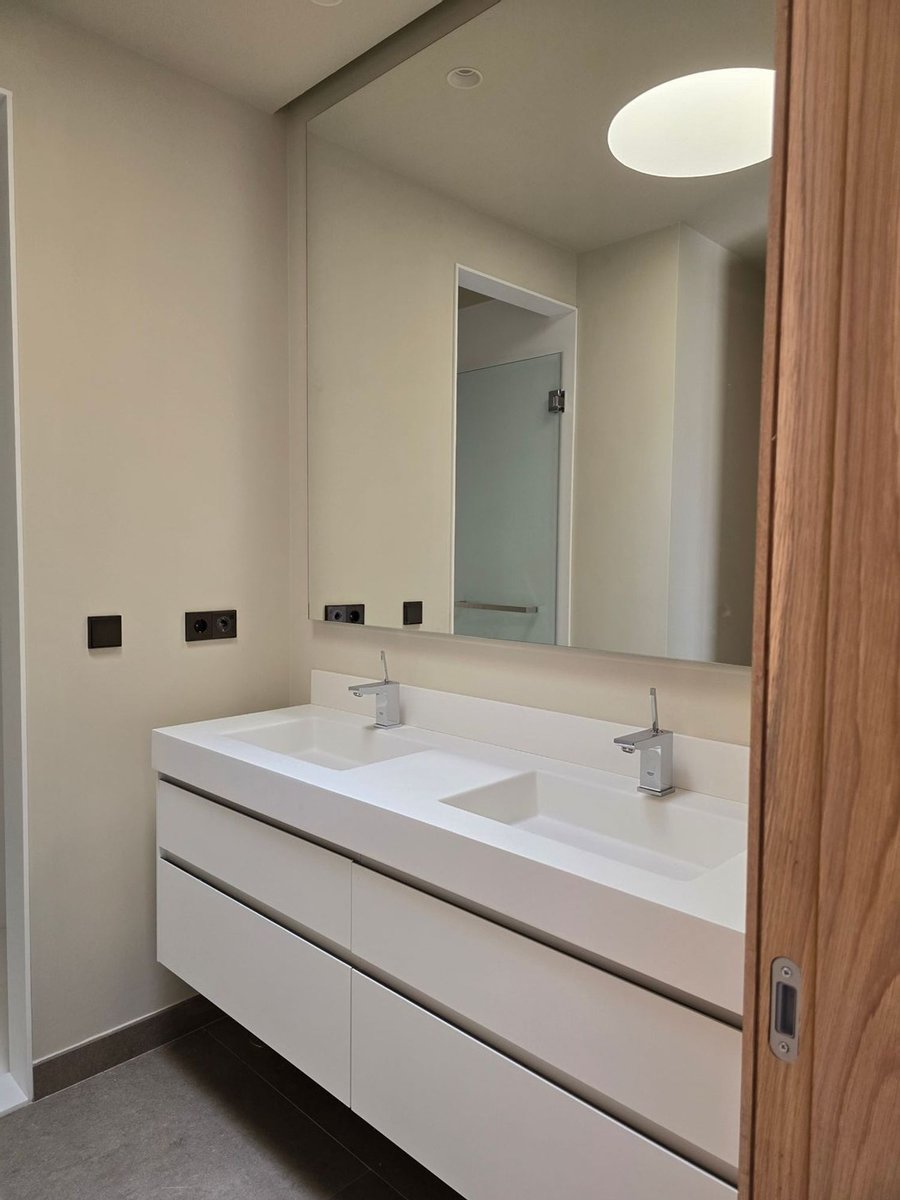 The villa has three en-suite bedrooms, all with en-suite bathrooms, carefully designed to offer maximum privacy and comfort. In total, the property has three full bathrooms and a guest toilet, ensuring comfort for both residents and guests.