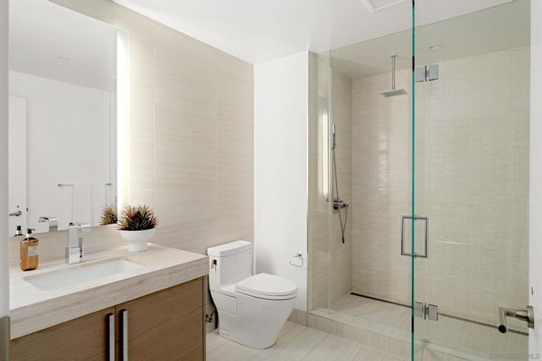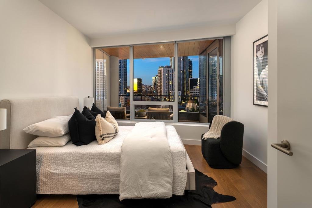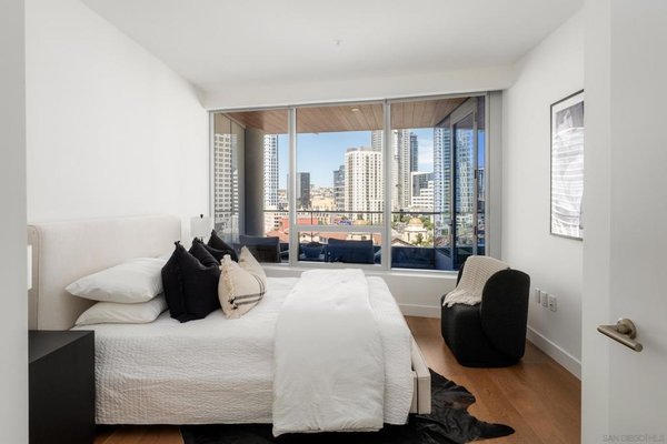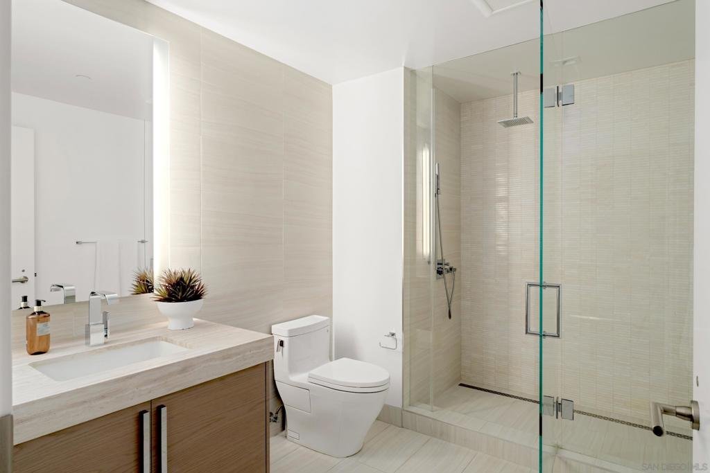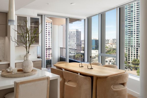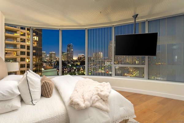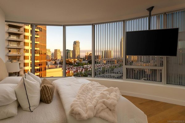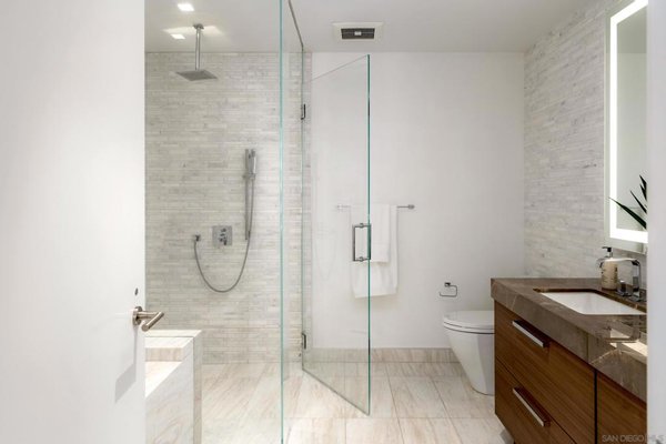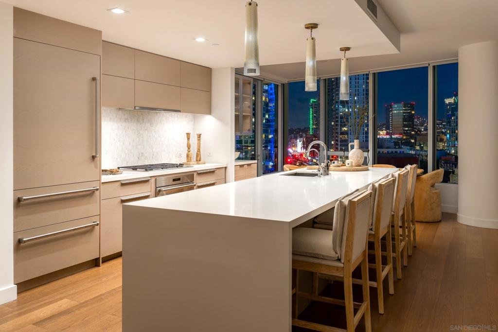 Erleben Sie eine raffinierte Perspektive auf luxuriöses Wohnen in dieser außergewöhnlichen Residenz in Pacific Gate. Mit einem seltenen Gefühl der Ankunft in einer Eigentumswohnung gestaltet, empfängt Sie dieser begehrte Grundriss durch einen echten Eingang im Foyer, der sowohl Privatsphäre als auch einen eleganten Übergang in die hellen Innenräume des Hauses bietet. Der Hauptwohnraum wird durch die charakteristische geschwungene Glaswand von Pacific Gate definiert, wo weite Stadtansichten und schillernde Abendlichter eine dynamische Kulisse schaffen. Eine private, überdachte Terrasse erstreckt sich nahtlos vom Wohnzimmer und schafft ein müheloses Innen-Außen-Erlebnis über der lebendigen Skyline der Innenstadt. Im Herzen des Hauses bildet eine skulpturale Caesarstone-Wasserfallinsel die Küche des Kochs, ergänzt durch eine saubere, moderne Palette und elegante, zeitgenössische Schränke. Das integrierte Smart-Home-Automatisierungssystem verbessert das tägliche Leben, indem Sie Beleuchtung, Klima und mehr in jedem Raum von einem Tablet zu Hause oder Ihrem mobilen Gerät aus steuern können. Die Hauptsuite bietet Ausblicke auf die Bucht, die Coronado-Brücke und Coronado, während das von Spa inspirierte Badezimmer eine Badewanne, eine verglaste Dusche, ein Doppel-Waschbecken mit LED-beleuchteten Anti-Nebel-Spiegeln und einen integrierten Fernseher bietet. Die Bewohner von Pacific Gate genießen eine unvergleichliche Suite an Resort-Qualitäten, darunter eine private Yachtshare, eine luxuriöse Autoflotte, einen 24-Stunden-Concierge und Sicherheitsdienst, eine Resort-ähnliche Poolterrasse, ein hochmodernes Fitnesscenter, einen Vorführraum, eine Gästesuite und ein von einem Promi-Koch geführtes Restaurant vor Ort. Pacific Gate bringt Sie nur wenige Augenblicke vom Marina District, Seaport Village, zu gehobenen Speisen und Einkaufsmöglichkeiten entfernt. Der erste komplett verglaste Super Prime Wohnturm in San Diego bietet einen beispiellosen Lebensstil am Wasser mit himmelhohen Annehmlichkeiten und Postkartenblicken. Mit direktem Blick auf die Wasserfront bietet der 41-stöckige Turm ein exklusives Angebot an von Hirsch Bedner Associates entworfenen Häusern. Das renommierte New Yorker Architekturbüro Kohn Pedersen Fox (KPF) schuf ein Wahrzeichen, das die Skyline von San Diego neu gestaltete. Die maßgefertigten Glaswände spiegeln dynamisch die Farben des Himmels und des Pazifischen Ozeans wider. Pacific Gate hat die Skyline von San Diego weiterentwickelt und repräsentiert die Zukunft der Stadt. Das Gebäude besteht aus zwei verschachtelten, gebogenen Glastürmen, die als einzelne Säule von einem dreistöckigen Einzelhandelspodium im Erdgeschoss an der Nord- und Westseite des Turms emporragen. Dank der Kurven und des Außenglases des Gebäudes bietet Pacific Gate von jedem Blickwinkel aus ein beeindruckendes Beobachtungserlebnis. Die Bewohner kommen nach Hause in einen wunderschön gestalteten Motorcourt mit einer privaten Luxuswagenflotte, die zu einer doppelt hohen Lobby mit einem 24-Stunden-Concierge- und Portierservice führt. Zwei Ausstattungsebenen verfügen über eine Bewohnerlounge, die sich ideal für Veranstaltungen und den Alltag eignet; das Fitnesscenter verfügt über eine umfangreiche Auswahl modernster Geräte. Angrenzend an das Fitnessstudio befinden sich die Dampf- und Sauna-Retreats, die sich zur Pool-Terrasse im vierten Stock mit Poolcabanas und Glasrahmen öffnen.