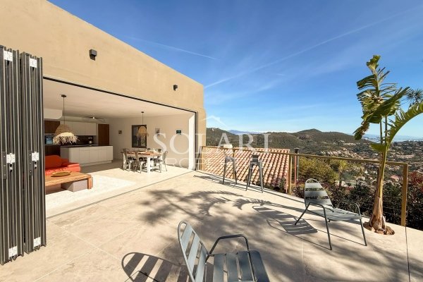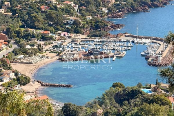 Diese Villa liegt in einem sicheren Anwesen in Théoule – Le Trayas und bietet einen Panoramablick auf das Meer und die Estrel-Hügel.