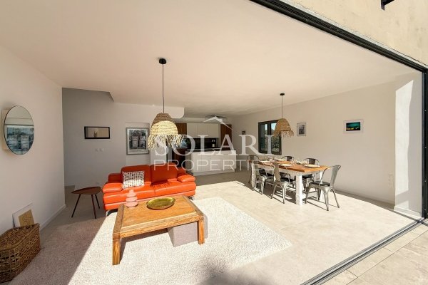Im Obergeschoss besteht der Schlafbereich aus zwei Schlafzimmern, von denen eines auf eine große Terrasse hinausgeht, ein Duschzimmer mit WC und einen Ankleidebereich.