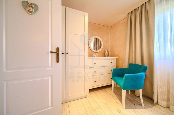Dieses Doppelhaus in Dobrinj auf der Insel Krk richtet sich an Käufer, die Ruhe und Natur bewusst suchen. Sie wohnen hier umgeben von Wald, mit angenehmer Distanz zum Meer. Rund 2000 m trennen Sie von der Küste. Genug Abstand für entspannte Tage und dennoch nah genug für spontane Ausflüge. Ein eigener Parkplatz direkt am Haus macht den Alltag unkompliziert.