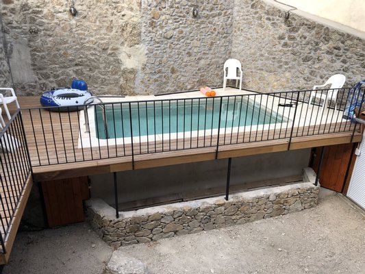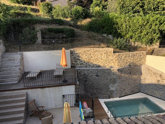 Die Außenbereiche sind großzügig und vielseitig: Innenhof, drei Terrassen und ein schöner beheizter Pool (3 × 5 m).