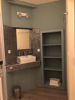 Ein elektrischer Rollladen im Erdgeschoss ermöglicht bereits eine komplette Trennung und ist von der Straße aus zugänglich. Ein gemeinsamer Eingang zum Garten ermöglicht unabhängigen Zugang zu den oberen Etagen. Mit dem Hinzufügen einer zusätzlichen Wand könnten diese beiden Etagen unabhängig werden.