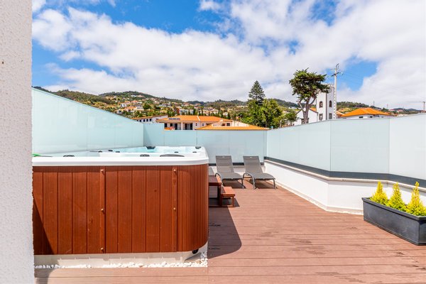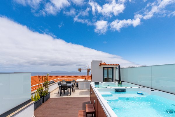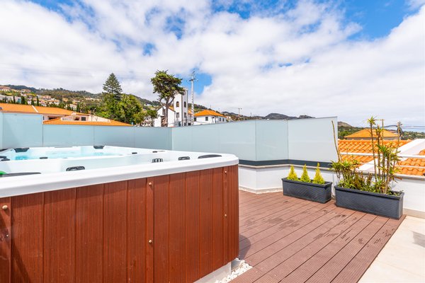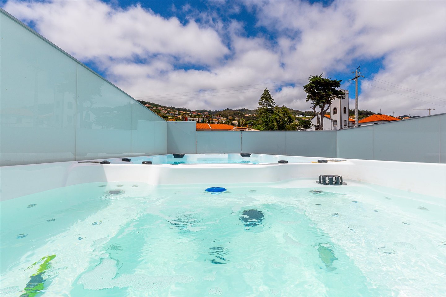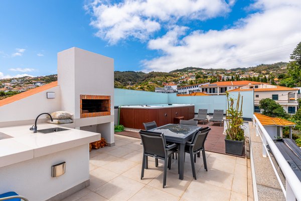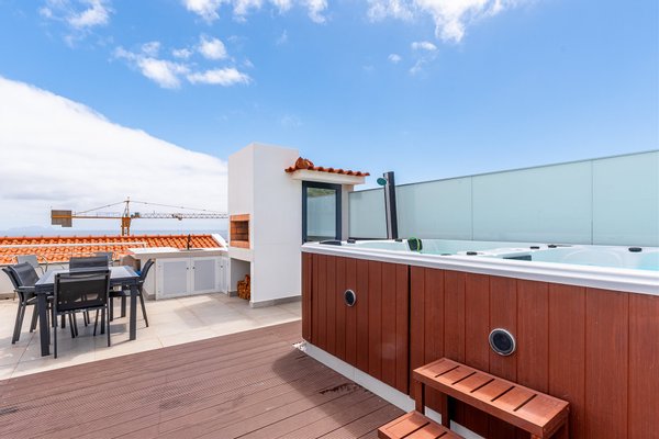 Das Gebäude verfügt über einen Aufzug und die Wohnung beinhaltet zwei private Tiefgaragenstellplätze. Die obere Etage gehört exklusiv zu dieser Wohnung und bietet Grill, Jacuzzi und Pool.