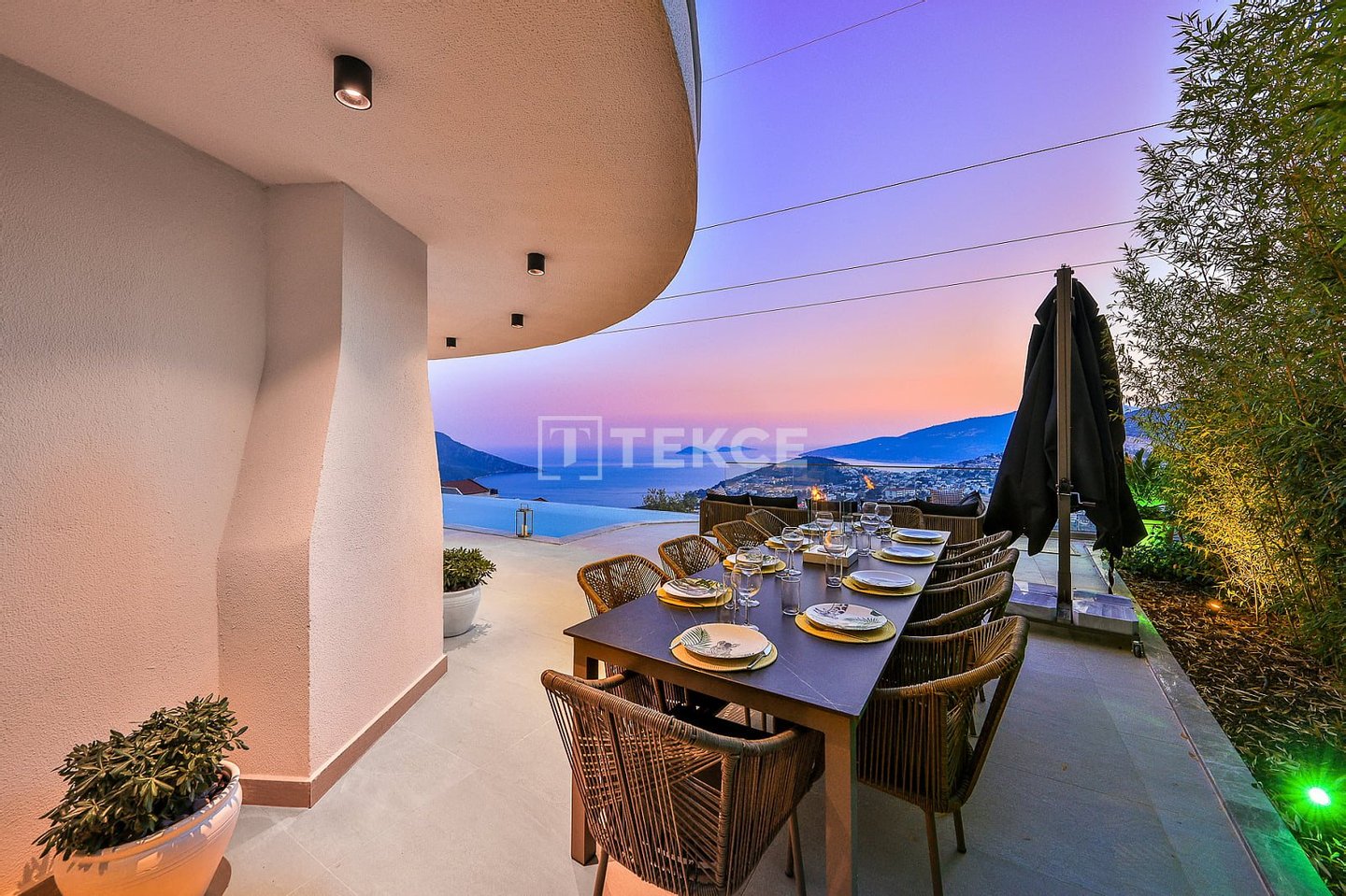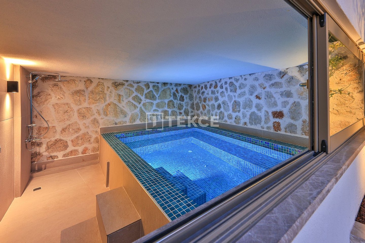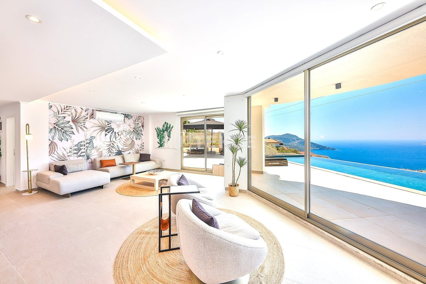Villa mit Panoramablick auf das Meer und Außen-Innenpools in der Nähe des Zentrums von Kalkan & 13 Kızıltaş, eine der prestigeträchtigsten Gegenden von Kalkan, ist ein exklusiver Wohnort, der aufgrund seiner Nähe zum Zentrum und seiner erhöhten Lage