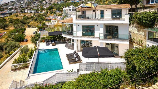 Villa mit Panoramablick auf das Meer und Außen-Innenpools in der Nähe des Zentrums von Kalkan & 13 Kızıltaş, eine der prestigeträchtigsten Gegenden von Kalkan, ist ein exklusiver Wohnort, der aufgrund seiner Nähe zum Zentrum und seiner erhöhten Lage einen unverbauten Meerblick bietet. Dank seiner modernen Infrastruktur, der ruhigen Atmosphäre und des hohen Mietrenditepotenzials gehört das Gebiet zu den begehrtesten Standorten in Kalkan für diejenigen, die sowohl luxuriöses Wohnen als auch wertvolle Investitionsmöglichkeiten suchen. & 13 Diese Villa zum Verkauf in Kalkan, Antalya, liegt 2 km vom nächsten Strand, dem öffentlichen Strand von Kalkan, 8 km von der historischen und natürlichen Sehenswürdigkeit Kaputaş-Strand und 18 km von der antiken Stadt Patara entfernt. Für umfassendere medizinische Versorgung ist das Kaş Staatskrankenhaus 28 km entfernt. Der nächstgelegene Flughafen, der Flughafen Dalaman, liegt etwa 120 km von der Villa entfernt. & 13 Die auf einem 500 m² großen Grundstück über drei Etagen erbaute Villa mit 5 Schlafzimmern ist so konzipiert, dass sie von jeder Etage aus Meerblick bietet. Zur Villa gehören ein Außenpool mit einer großzügigen Sonnenterrasse sowie ein Innenpool, der ganzjährig genutzt werden kann. Ausgestattet mit luxuriösen Details wie einem voll ausgestatteten Fitnessraum und einem privaten Parkplatz eignet sich die Villa sowohl für den privaten Gebrauch als auch für Investoren, die hohe Mieteinnahmen anstreben. Mit einer Bruttofläche von 300 m² bietet sie 5 geräumige Schlafzimmer, jedes mit eigenem Bad, und schafft so einen komfortablen Wohnraum an. Komplett renovierte Innenräume und ein unverbauter Meerblick machen sie zu einer herausragenden Wahl sowohl für Investitionen als auch für den Lebensstil.& 13 AYT-04953