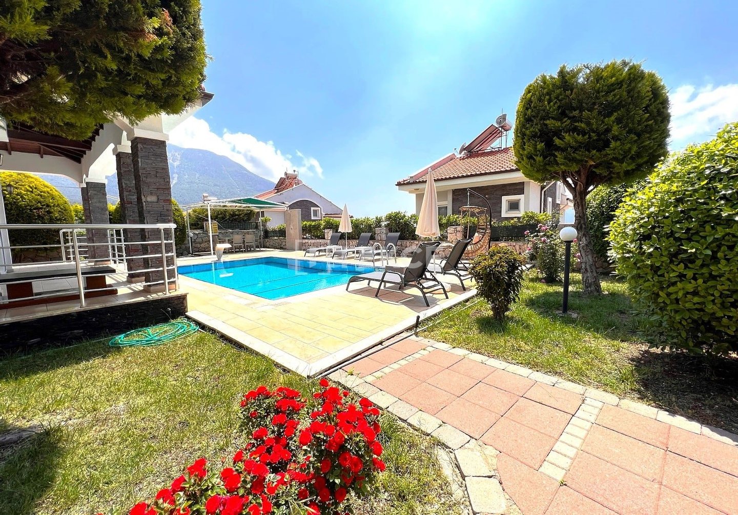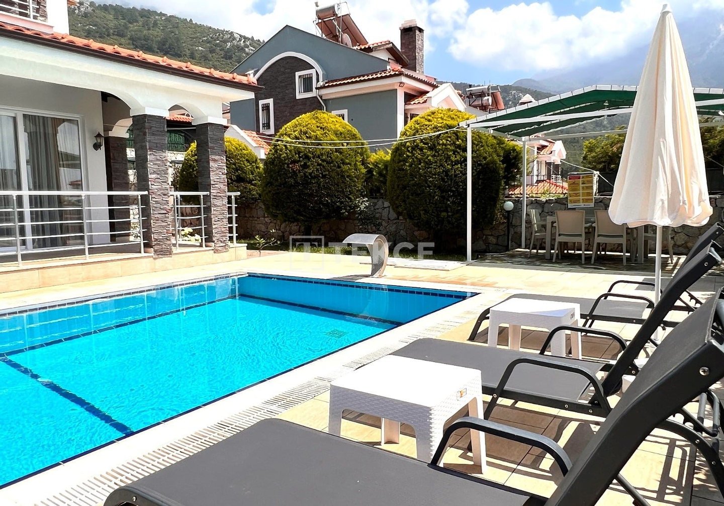 Freistehende Villa mit Naturblick und privatem Pool in Ovacık Ölüdeniz Fethiye & 13 Fethiye Ovacık ist ein Wohngebiet am Fuße des Babadağ, bekannt für seine niedrige Luftfeuchtigkeit und saubere Luft. Nur wenige Autominuten vom weltberühmten Ölüdeniz-Strand und dem lebhaften Stadtzentrum von Fethiye entfernt, verbindet die Gegend hohen Investitionswert mit einer gut ausgebauten touristischen Infrastruktur und ist somit ideal sowohl für den dauerhaften Wohnsitz als auch als Kapitalanlage. & 13 Diese Villa zum Verkauf in Fethiye, Türkei bietet dank ihrer zentralen Lage eine gute Anbindung an viele wichtige Orte. Sie ist ca. 1 km von Einrichtungen des täglichen Bedarfs wie Märkten und Apotheken, 2 km von der nächsten Schule, 5 km vom Strand von Ölüdeniz und Kayaköy, 6 km vom Paragliding-Gebiet Babadağ, 7 km von Einkaufszentren, 8 km vom öffentlichen Krankenhaus, 9 km vom Stadtzentrum von Fethiye und 55 km vom Flughafen Dalaman entfernt. & 13 Die Villa bietet einen Panoramablick auf Ovacık und erstreckt sich über drei Etagen auf einem 450 m² großen Grundstück an. Sie verfügt über eine funktionale Raumaufteilung mit einem privaten Pool, einem angelegten Garten und einem offenen Parkplatz. & 13 Mit einer Bruttofläche von 250 m² und einer Netto-Nutzfläche von 200 m² bietet die Villa moderne und großzügige Wohnbereiche. Vollständig möbliert und bezugsfertig nimmt sie eine prestigeträchtige Lage in Ovacık ein und eignet sich ideal als renditestarke Mietinvestition oder als außergewöhnliches Einfamilienhaus für komfortables, privates Wohnen. Die Villa qualifiziert sich zudem für die türkische Staatsbürgerschaft durch Investition.& 13 BJV-00687