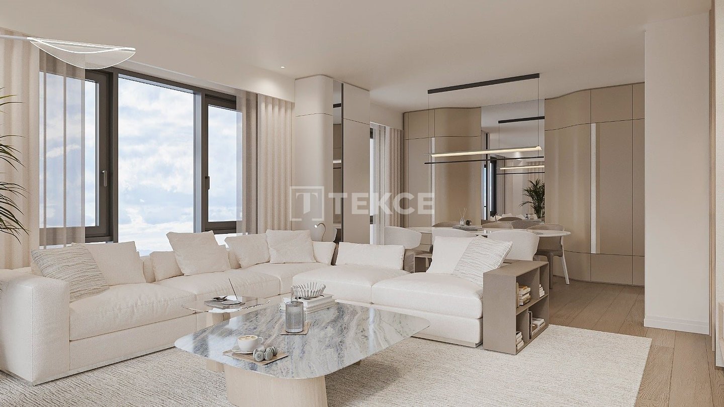 Wohnungen mit Meer- und Inselblick in einem Komplex 200 m von der Küste in Kartal entfernt & 13 Kartal, ein Küstenbezirk auf der anatolischen Seite Istanbuls, zeichnet sich als eine der begehrtesten Gegenden aus und bietet einen Panoramablick auf das Meer und die Prinzeninseln. Der Stadtteil verfügt über Parks, Konzert- und Veranstaltungsorte sowie Einkaufs- und Unterhaltungszentren, die ein pulsierendes soziales Leben ermöglichen. Der Aydos-Wald in der Umgebung bietet einen idealen Rahmen für Camping und Outdoor-Aktivitäten. Kartal bietet zudem eine gute Anbindung an die Stadt dank der Nähe zum Marmaray-Bahnhof, zu U-Bahn-Stationen, zum Fähranleger und zum Flughafen. & 13 Diese Wohnungen zum Verkauf in Istanbul Kartal liegen 50 m vom nächsten Markt entfernt, 50 m vom Marmaray-Bahnhof, 200 m von der Promenade, 400 m von einem Einkaufszentrum, 700 m von Privatschulen, 3 km von der U-Bahn-Station, 17 km vom Flughafen Sabiha Gökçen, 26 km von der Brücke der Märtyrer des 15. Juli und 36 km vom Eurasia-Tunnel entfernt. & 13 Das Projekt besteht aus 4 Blöcken und 666 Wohneinheiten und umfasst Parkplätze im Innen- und Außenbereich, 1 Außen- und 4 Innenpools, Spazierwege, eine Sauna, einem türkischen Bad, einem Whirlpool, einem Dampfbad, einem Fitnesscenter, einem Reformer-Pilates-Studio, Massageräumen, Basketball- und Volleyballplätzen, einem Kinderspielplatz, einem Hundespielplatz, einer Aussichtsterrasse, Ruhebereichen und Pergolen, landschaftlich gestalteten Aktivitätsbereichen, einem Sozialclub, einer Cafeteria, einem Gemeinschaftsgarten, 23 Gewerbeeinheiten, Rezeption, Sicherheitsdienst und Überwachungskameras. & 13 Die Wohnungen sind mit einer Einbauküche, modernen Wasseraufbereitungssystemen, einer Badewanne, einem Waschraum, einer Duschkabine, einem Ankleidezimmer, einem eigenen Bad, einem intelligenten Haussystem, PVC-Fenstern, einem Balkon, einer Terrasse, einem zentralen Satelliten-TV-System, einem Badezimmer im Hilton-Stil und einer Eingangstür aus Stahl ausgestattet.& 13 IST-01800