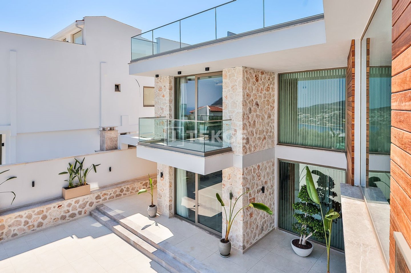 Villa mit Meerblick und exklusiver Ausstattung in Kalkan, Kaş & 13 Kalkan liegt westlich von Antalya und ist mit seinem kristallklaren Meer, den weltberühmten Stränden und der eleganten Atmosphäre eine der führenden Investitionsregionen am Mittelmeer. Die Region, die sich durch ihren Panoramablick auf das Meer und ihr hohes Vermietungspotenzial auszeichnet, bietet einen exklusiven Standort für diejenigen, die sowohl ein privilegiertes Leben als auch eine nachhaltige Immobilieninvestition suchen. & 13 Die Villa zum Verkauf in Kalkan, Türkei, liegt 1,3 km vom Zentrum entfernt. Sie ist 1 km vom Kalkan Public Beach, dem nächstgelegenen Strand, und 1,1 km vom Gesundheitszentrum von Kalkan entfernt. Der Kaputaş-Strand, eine historische und natürliche Sehenswürdigkeit, ist 7 km entfernt, und die antike Stadt Patara ist 17 km entfernt. Für umfassendere Gesundheitsdienstleistungen ist das Staatliche Krankenhaus von Kaş 27 km entfernt. Der nächstgelegene Flughafen, der Flughafen Dalaman, ist etwa 120 km entfernt. & 13 Diese auf einem 640 m² großen Grundstück erbaute, vierstöckige Luxusvilla bietet einen Panoramablick auf das Meer und verfügt über 600 m² Wohnfläche. Diese neu erbaute Villa bietet mit 5 geräumigen Schlafzimmern, die jeweils über ein eigenes Bad verfügen, sowie insgesamt 5 Badezimmern einen idealen Wohnraum für große Familien und diejenigen, die ein hohes Vermietungspotenzial für Ferienunterkünfte suchen. Von der Poolterrasse im Erdgeschoss genießt man einen teilweisen Panoramablick auf das Meer, während von den oberen Etagen ein unverbauter, vollständiger Panoramablick geboten wird. & 13 Die Villa verfügt über eine reichhaltige Auswahl an sozialen Annehmlichkeiten, darunter eine private Sauna, ein traditionelles türkisches Bad, ein voll ausgestatteter Fitnessraum, ein Heimkino und ein Spielzimmer, die ein komfortables Wohnumfeld bieten. Die Außenarchitektur zeichnet sich durch großzügige Terrassen aus, während das Innere mit drei Whirlpools (zwei davon überdacht, einer davon im Dachgeschoss) aufwartet. Mit sicheren Parkmöglichkeiten in einer privaten überdachten Garage bietet die Villa dank ihrer hohen Bauqualität und umfassenden Ausstattung sowohl eine Möglichkeit zum dauerhaften Wohnen als auch eine luxuriöse Investitionsmöglichkeit.& 13 AYT-04942