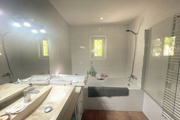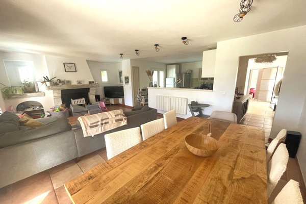 In einer ruhigen Gegend gelegen, schöne eingeschossige Villa von ca. 106 m² auf einem Grundstück von 735 m², Salzwasserpool mit Wärmepumpe und elektrischer Rollladen. Ausgestattete Küche, Wohnzimmer mit Kamin, das auf die Terrasse und den Pool führt, 4 Schlafzimmer, davon 2 klimatisiert. Badezimmer, Duschbad und ein separates WC, Flur mit Schrank. Verschiedenes: Septikgrube, automatisches Tor.