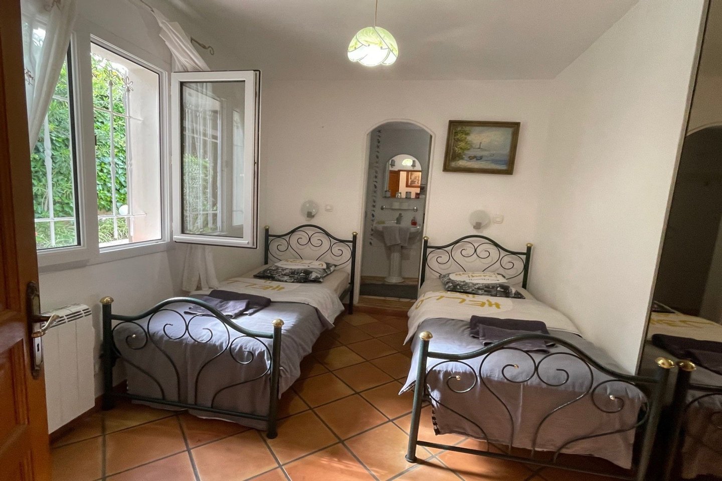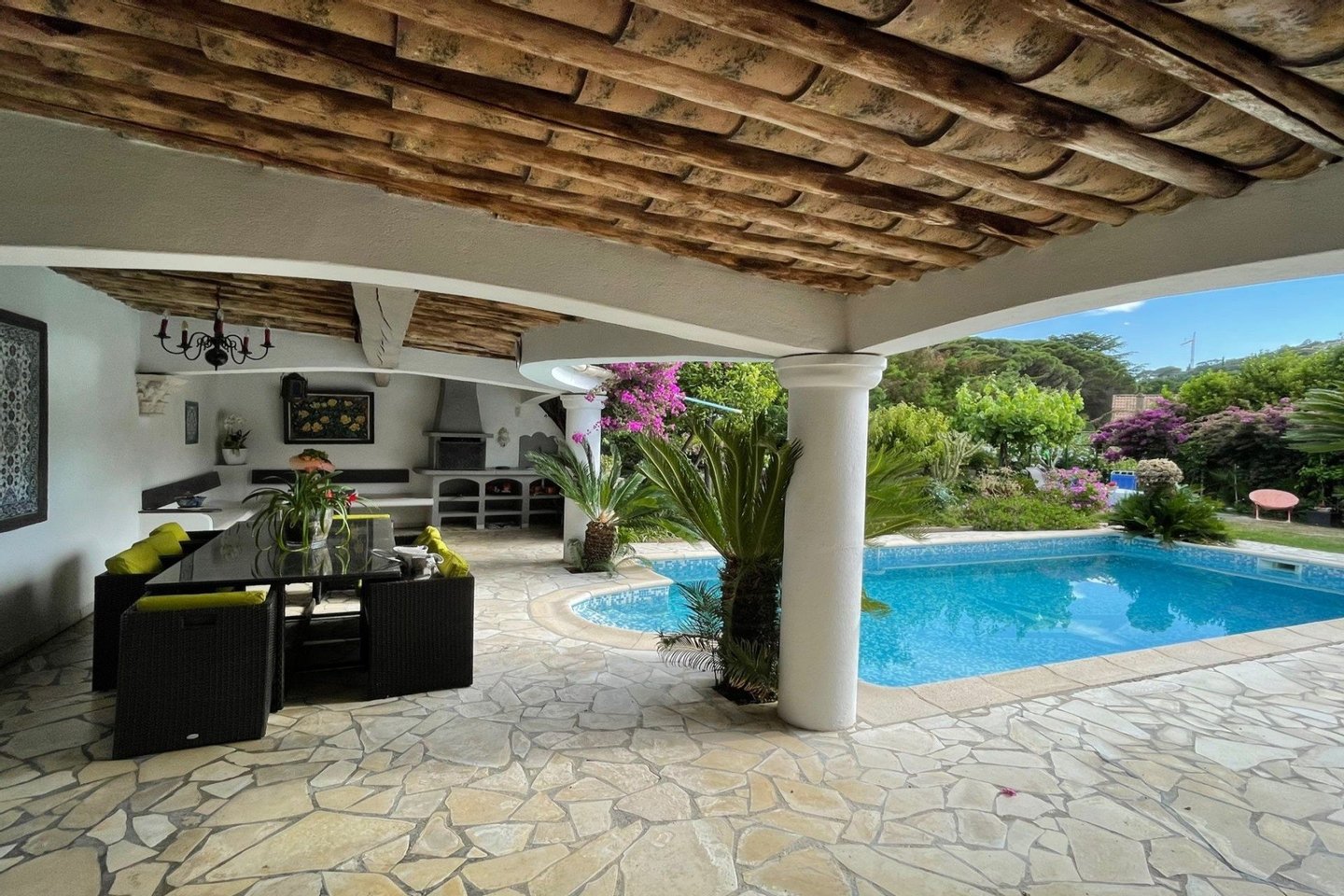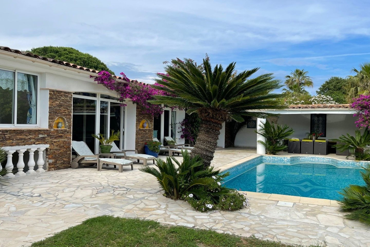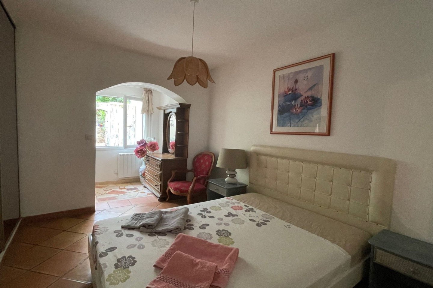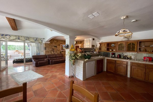 In einer geschlossenen Wohnanlage befindet sich dieses vollständig ebenerdige Haus in unmittelbarer Nähe zu den Stränden. Es verfügt über ein großes Wohnzimmer / Esszimmer mit offener Küche, 3 Schlafzimmer, darunter 2 mit Duschbad und WC, 1 Badezimmer, 1 separates WC. Ein umgebauter Wintergarten dient als 4. Schlafzimmer. Sommerküche mit Grill und traditionellem Schwimmbad. Ebenes Grundstück von 500 m. Die Agenturgebühren gehen zu Lasten des Verkäufers.