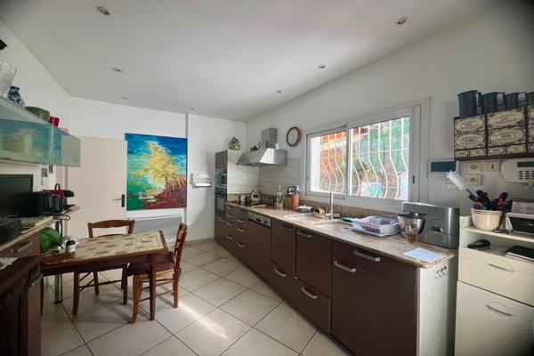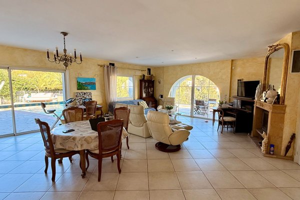 In Les Issambres, auf einem Grundstück von etwa 1250 m², entdecken Sie dieses charmante Haus mit Meerblick von 163,91 m². Es umfasst ebenerdig: einen Eingang mit Gäste-WC, ein Wohn-/Esszimmer mit Kamin, das Zugang zur Terrasse hat, die durch den Poolbereich ergänzt wird. Eine offene Küche, zwei Schlafzimmer sowie ein Duschbad mit WC. Im Erdgeschoss gibt es einen zweiten Eingang, zwei Schlafzimmer, ein separates WC, ein Duschbad, einen Arbeitsraum und Abstellräume. Ein Infinity-Pool sowie ein Carport und ein Poolhaus vervollständigen dieses Angebot.