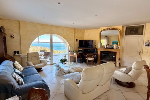 In Les Issambres, auf einem Grundstück von etwa 1250 m², entdecken Sie dieses charmante Haus mit Meerblick von 163,91 m². Es umfasst ebenerdig: einen Eingang mit Gäste-WC, ein Wohn-/Esszimmer mit Kamin, das Zugang zur Terrasse hat, die durch den