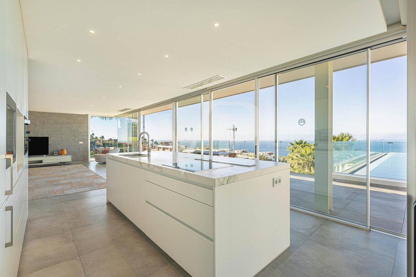 Diese moderne Luxusvilla im exklusiven Abama Resort vereint zeitlose Architektur, Privatsphäre und einen der beeindruckendsten Meerblicke Teneriffas. Im Obergeschoss eröffnet sich ein spektakuläres Panorama – das Herzstück der Villa. Die offen gestaltete Designküche geht fließend in den eleganten Wohn- und Essbereich über. Bodentiefe Fenster schaffen lichtdurchflutete Räume und führen direkt auf die großzügige Terrasse mit Infinity-Pool. Der Atlantik scheint optisch mit dem Pool zu verschmelzen und verleiht dem Wohnbereich eine außergewöhnliche Weite und Ruhe.