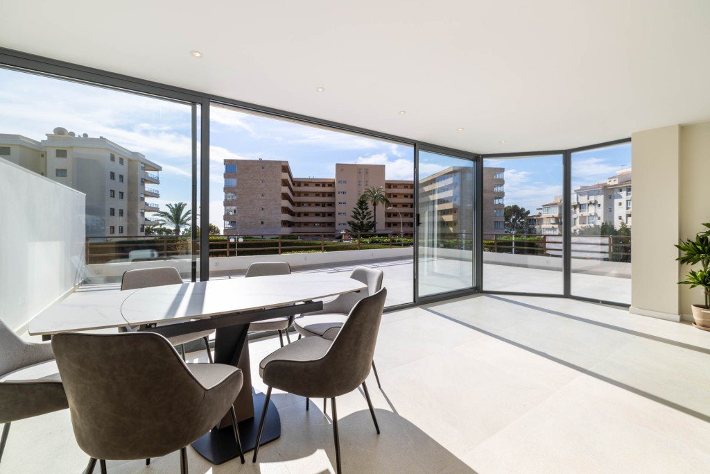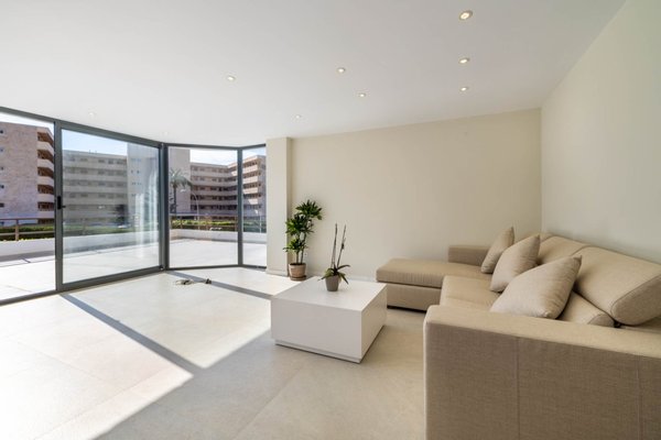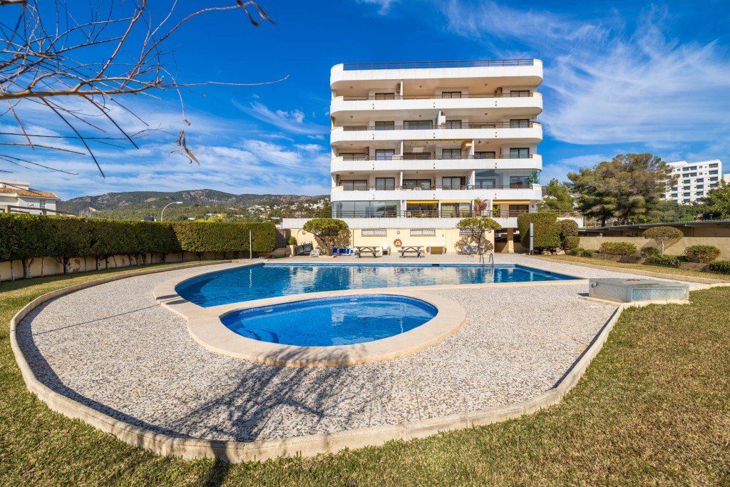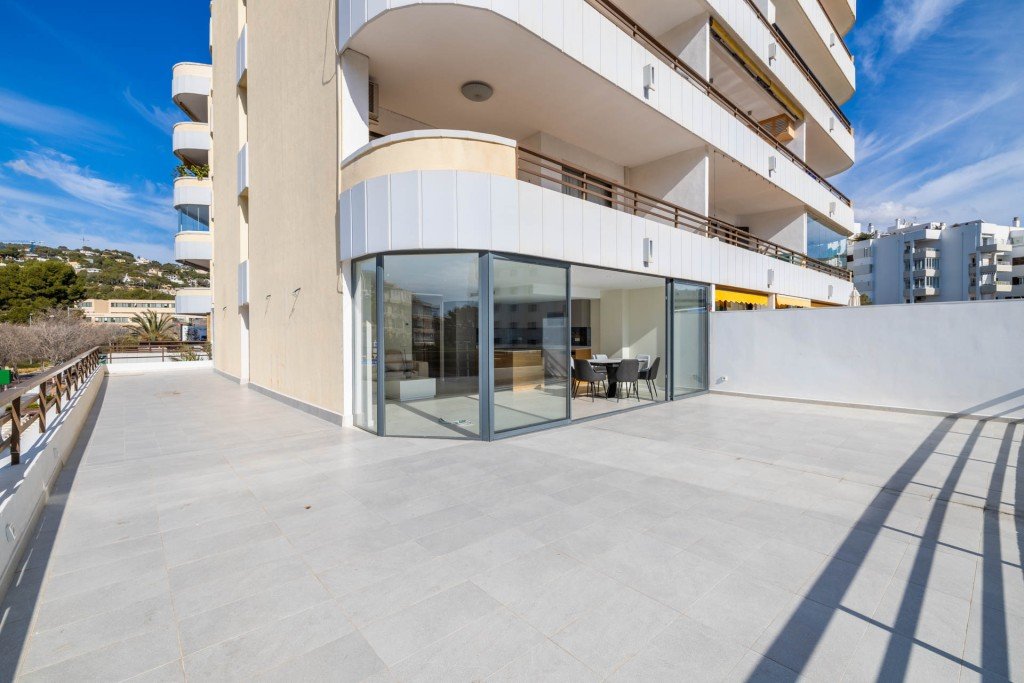 Der Komplex liegt nur 2 Gehminuten vom berühmten Yachthafen Puerto Portals und zwei wunderschönen Stränden entfernt. Die Wohnung eignet sich perfekt als Dauerwohnsitz oder Ferienhaus und verfügt über einen geräumigen Wohn- und Essbereich mit einer offenen Küche, die vollständig mit modernen Geräten ausgestattet ist. Große Fenster sorgen für reichlich Tageslicht und bieten Zugang zu einer riesigen Terrasse, auf der den ganzen Tag die Sonne scheint.