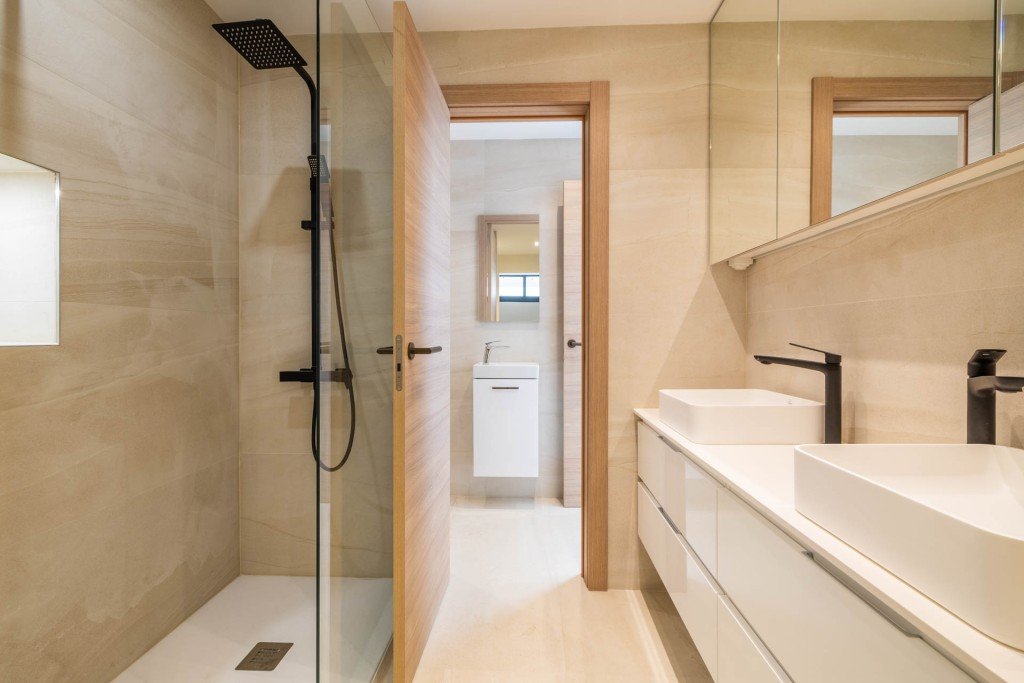Es gibt zwei Doppelschlafzimmer, jedes mit begehbarem Kleiderschrank und eigenem Bad. Das zweite Badezimmer verfügt über ein separates WC, das über eine Tür im Badezimmer oder über einen separaten Eingang vom Wohnzimmer aus zugänglich ist, was es ideal als Gäste-WC macht. Das Apartment wird voll möbliert verkauft und verfügt außerdem über einen überdachten Parkplatz. Sehr zu empfehlen!