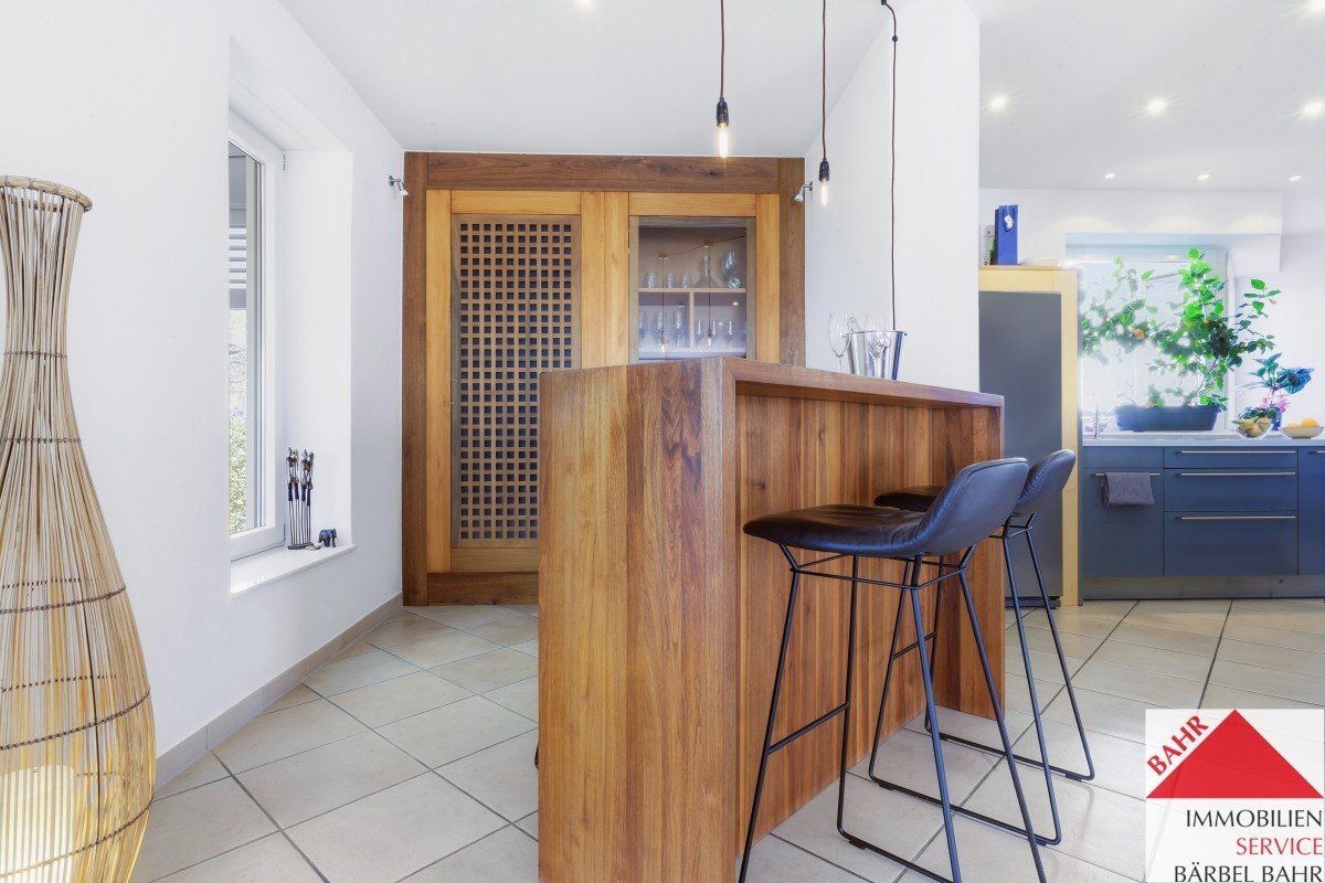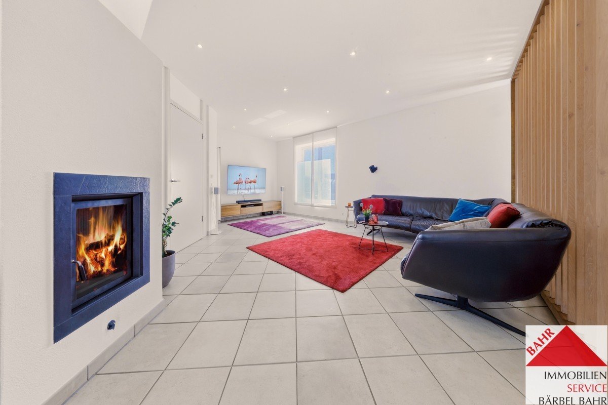 Treten Sie ein! Im Erdgeschoss ein über 85 m² riesiger, gemütlicher Wohn-/Essbereich mit gemütlichem Kaminofen. Die Küche mit Gaskochfeld, Teppanyaki und Wärmeschublade, freistehendem Kühlschrank – durchdacht und schick.