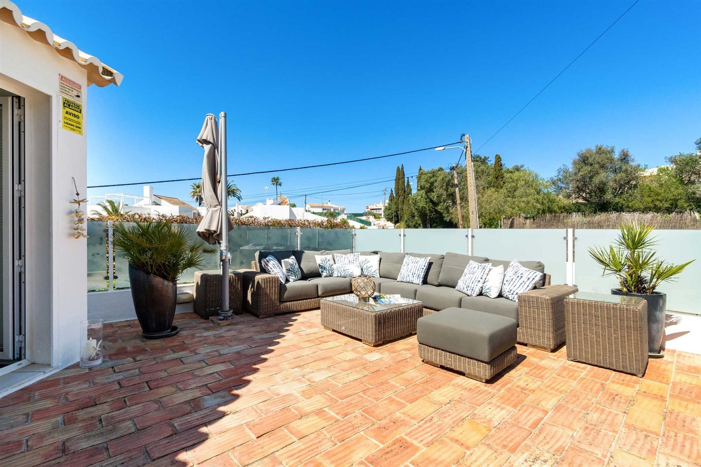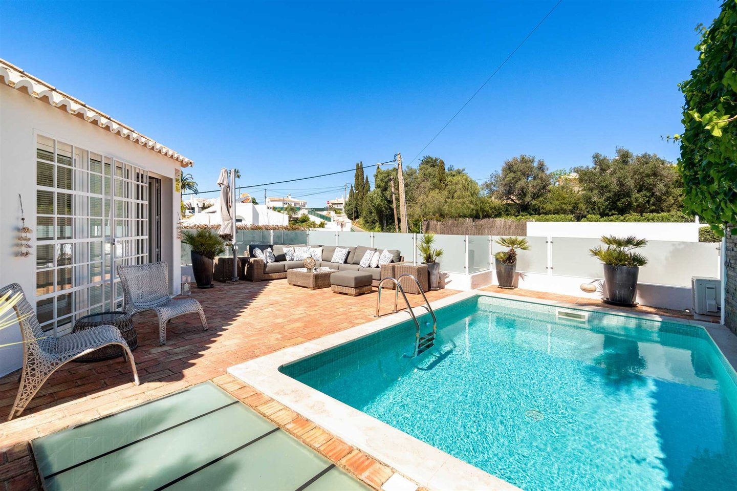 Dieses charmante, renovierte Haus liegt in einer angenehmen Wohngegend in der Nähe des Dorfes Guia und spricht diejenigen an, die Ruhe, Privatsphäre und Entspannung schätzen. Über zwei Etagen verteilt bietet die Immobilie schöne Außenbereiche, darunter ein Garten, ein Schwimmbad und helle, sonnige Terrassen. Beim Betreten finden Sie ein einladendes Esszimmer, das sich zu einer voll ausgestatteten, modernen Küche öffnet. Vom Speisebereich aus führt das lichtdurchflutete Wohnzimmer mit Kamin zu einer warmen, einladenden Atmosphäre und öffnet sich zu einer ersten Terrasse, die zu einem hübschen eingezäunten Garten mit barbecue-Bereich führt – ideal, um Zeit im Freien zu genießen. Ein großzügiges En-Suite-Schlafzimmer vervollständigt diese Ebene. Von der Lounge aus führt eine Treppe zu einem zweiten En-Suite-Schlafzimmer mit Ankleideraum. Diese Etage bietet zudem Zugang zu einer zweiten Terrasse mit Schwimmbad und mehreren Entspannungsbereichen. Die beiden Terrassen sind über eine hinter dem Haus verlaufende Treppe verbunden, sodass sich die Räume leicht verbinden lassen. Die Immobilie ist mit Sonnenkollektoren, reversibler Klimaanlage ausgestattet und an die städtische Wasserversorgung sowie das Abwassersystem angeschlossen. Wenn diese einzigartige Immobilie Ihr Interesse geweckt hat, kontaktieren Sie uns für weitere Informationen oder um eine Besichtigung zu vereinbaren! Standort in einer ruhigen Wohngegend bietet dieses Villa eine ideale Lage, damit Sie die nahegelegenen Annehmlichkeiten und Aktivitäten genießen können und gleichzeitig eine friedliche Umgebung haben. Zur Freizeit liegt das Algarve Shopping Center etwa 5 Minuten entfernt, der Yachthafen von Albufeira ca. 10 Minuten. Golfliebhaber erreichen die Salgados-Course und sein Naturschutzgebiet bequem. Einfache und schnelle Erreichbarkeit: - Supermarkt: 7 Minuten - Gesundheitsdienstleistungen: 7 Minuten - Montessori International School: 10 Minuten - Nobel International School (Lagoa): 22 Minuten - Strände: 8 Minuten - Golfplätze: 7 Minuten - Faro Internationaler Flughafen: 35 Minuten