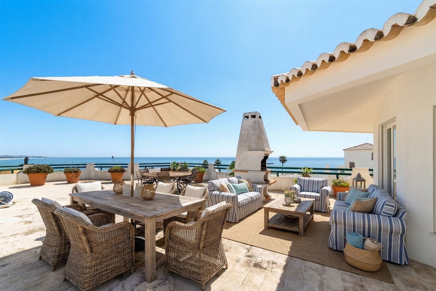 Entdecken Sie dieses außergewöhnliche Penthouse mit einer Gesamtfläche von 288,11 m², darunter eine expansive private Terrasse von 153,25 m², auf der Sie die Sonne genießen und zugleich einen atemberaubenden Panoramablick auf das Meer und die Küste