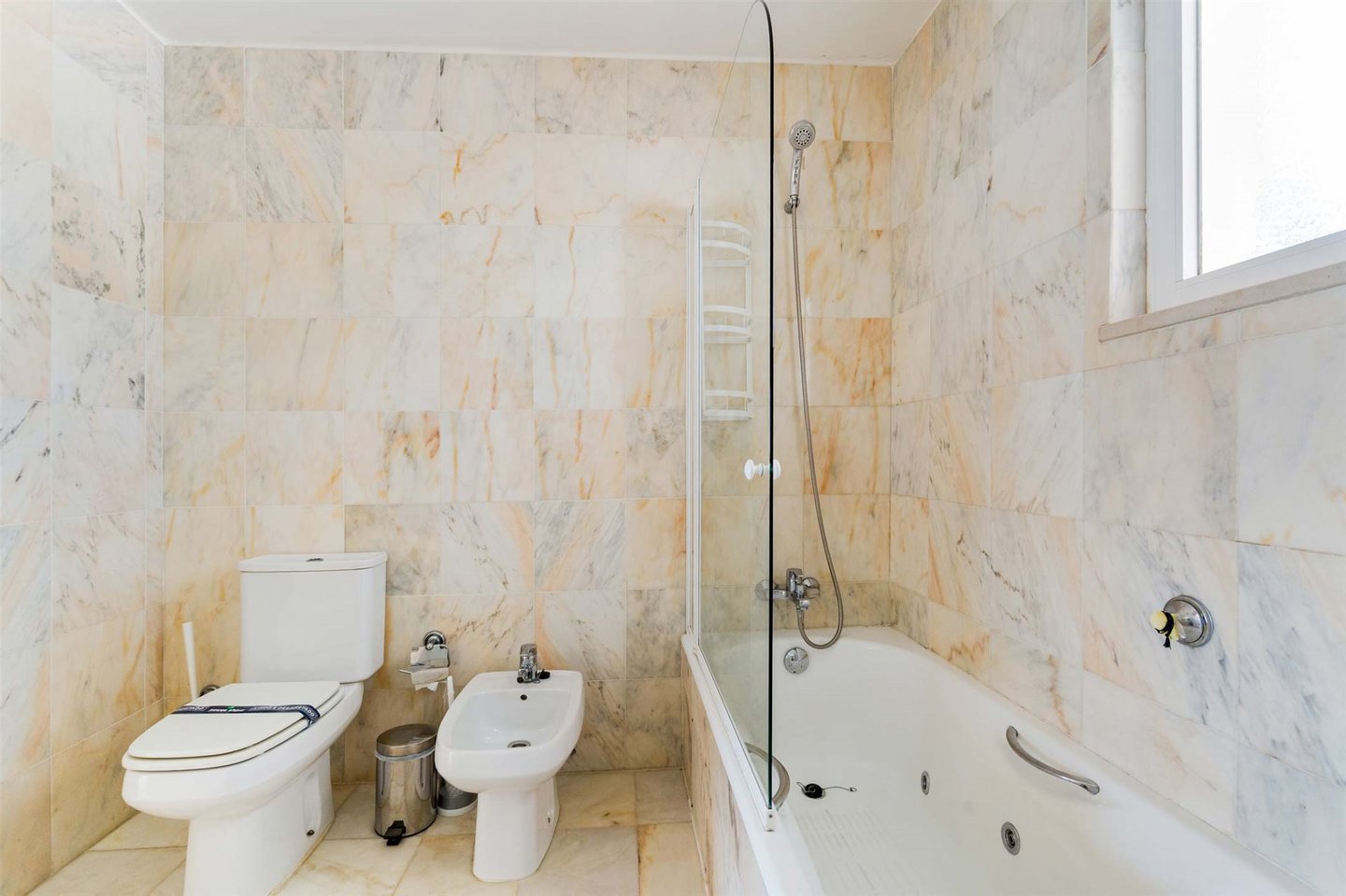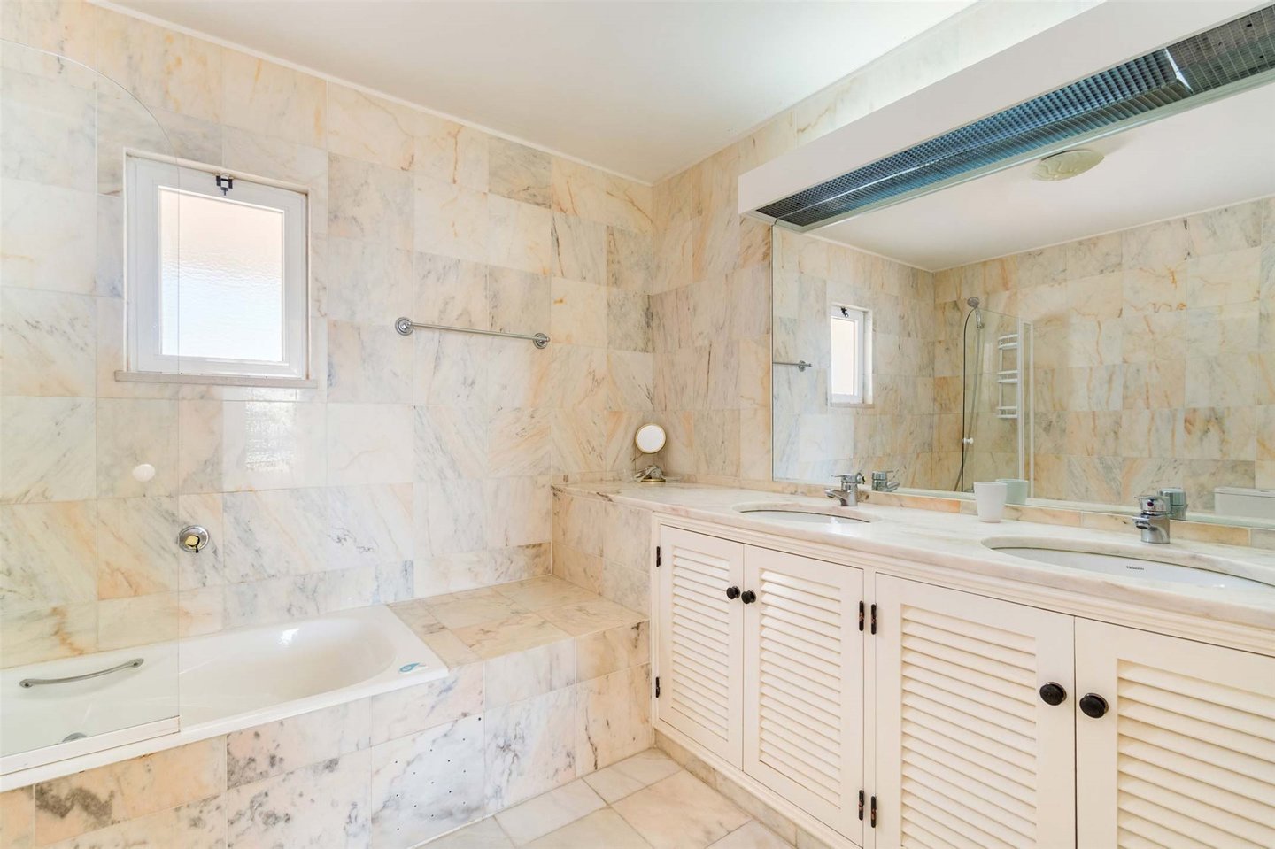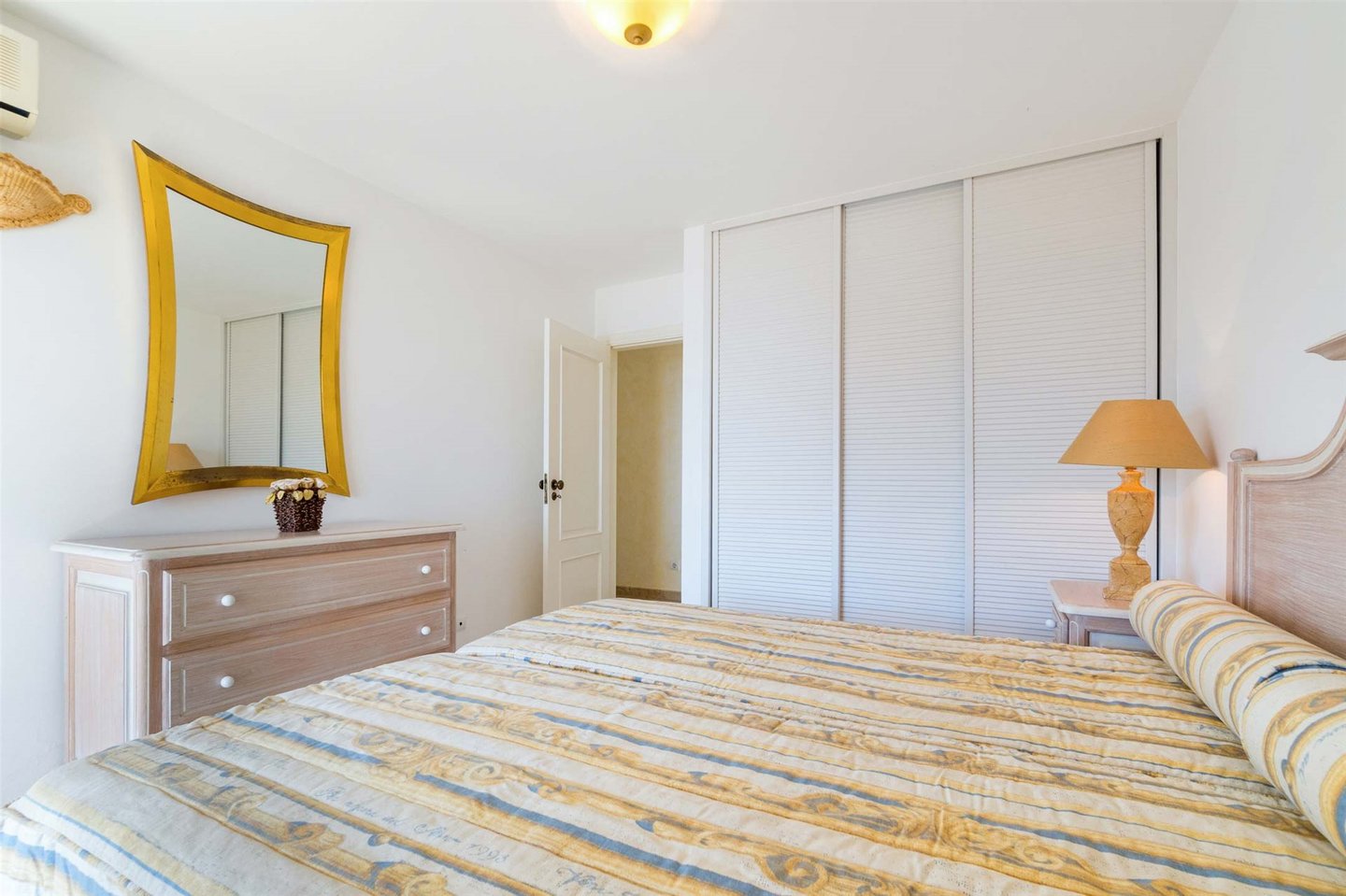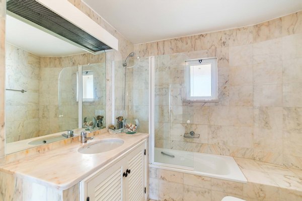 Ein Badezimmer und eine vollständig ausgestattete Küche befinden sich günstig neben dem Wohnbereich. Am gegenüberliegenden Ende der Wohnung finden Sie drei gut proportionierte Schlafzimmer. Alle Schlafzimmer verfügen über Einbauschränke, eines davon mit eigenem Bad. Jedes Schlafzimmer bietet einen schönen Meerblick und direkten Zugang zur Terrasse.