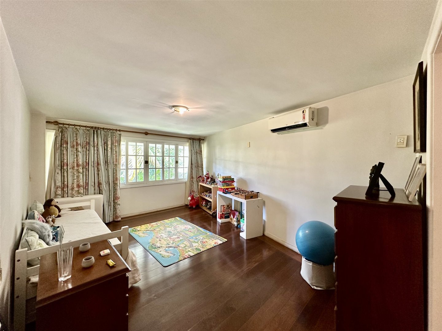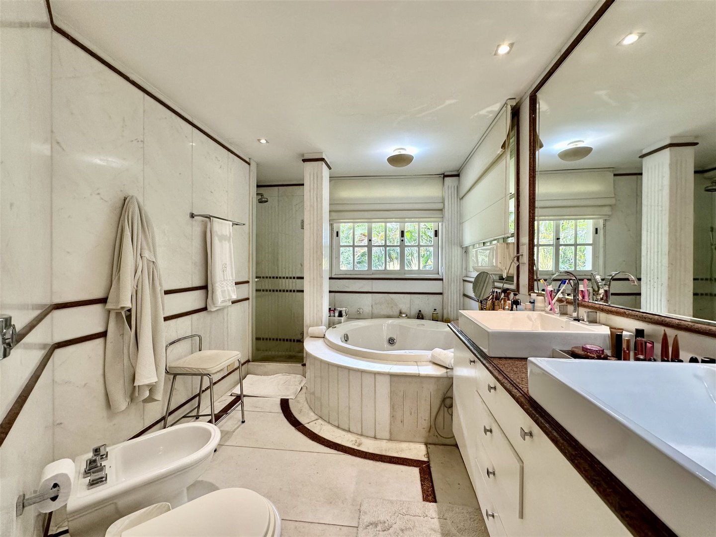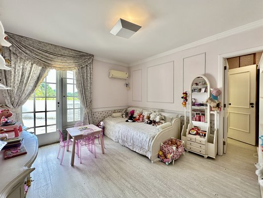 Im zweiten Stock befindet sich der private Bereich mit fünf Suiten mit Balkonen, darunter eine Master-Suite mit begehbarem Kleiderschrank und Badewanne/Jacuzzi. Der Dachboden bietet einen großen flexiblen Raum für ein Fitnessstudio oder Unterhaltung. Der Keller umfasst drei Personalzimmer, und die Garage bietet Platz für bis zu acht Autos. Die Condominium Anlage bietet Tennisplätze, ein Mehrzweckfeld, einen Spielplatz und einen Gourmetbereich.