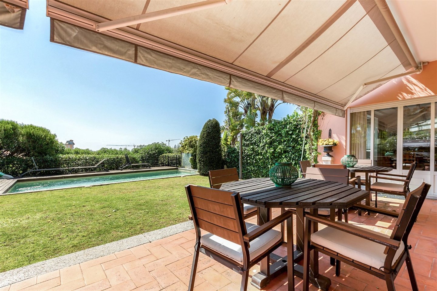 In einem südlich ausgerichteten Zuhause zu leben, lässt das Licht den Rhythmus des Tages vorgeben. Mit einem Grundstück von 1.160 qm reicht der Alltag über die Wände hinaus; Kinder haben Raum zum sicheren Wachsen, und gesellschaftliche Ereignisse gewinnen an Größe eines privaten Gartens – nur wenige Schritte vom Casino und vom Meer entfernt.