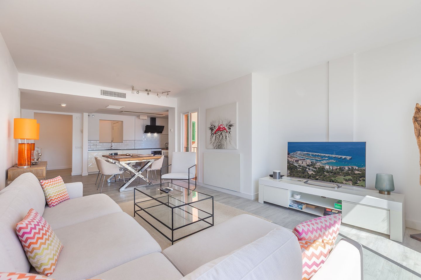 Das modern und geschmackvoll ausgestattete Apartment mit begehrter Südausrichtung präsentiert sich hell und einladend. Herzstück der Immobilie ist die 34 m² große vorgelagerte Sonnenterrasse, die einen uneingeschränkten, atemberaubenden Blick auf das Meer, den Hafen sowie die umliegende Landschaft bietet – ein perfekter Ort zum Entspannen und Genießen.