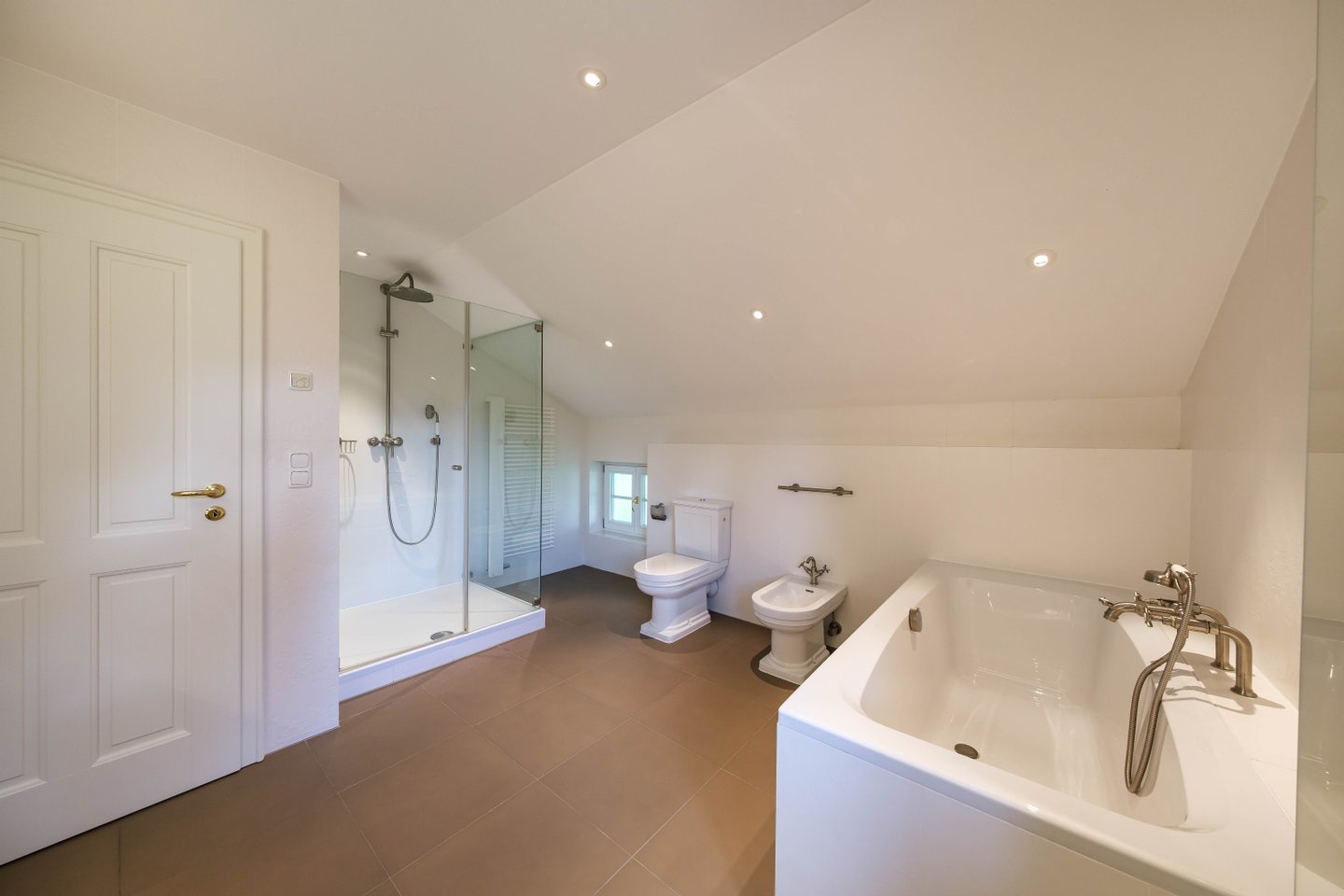 Die Wohn-und Nutzfläche von insgesamt 374 m² teilt sich auf in ca. 193 m² Wohnfläche im EG/OG sowie ca. 92 m² in Wohnraumqualität ausgebaute Nutzfläche im Untergeschoss und zusätzlich Nutzfläche von ca. 89 m² (Garage, Keller, Speicher).