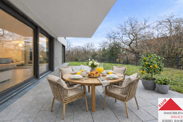 Der großzügige Wohn- und Essbereich wird zum Mittelpunkt Ihres Alltags. Licht durchflutet den Raum, die Übergänge nach draußen sind fließend. Innen und Außen verschmelzen – besonders an Tagen, an denen sich das Leben einfach nach draußen verlagert. Zwei Terrassen bieten genau die Freiheit, die man sonst nur vom Haus kennt: Sonne am Morgen, Ruhe am Abend. Der private Garten wird dabei zu Ihrem Rückzugsort – für Familienzeit, für entspannte Abende oder einfach für den Luxus, Raum zu haben.
