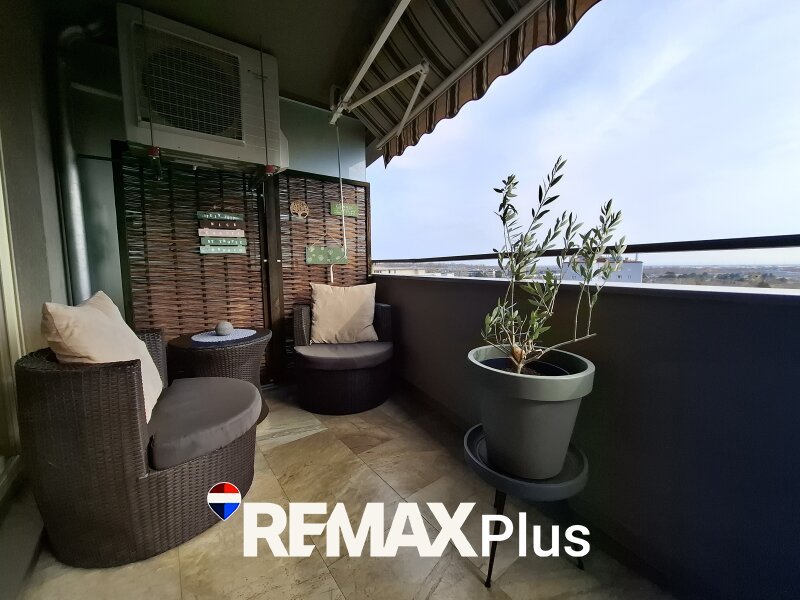 Von diesem Bereich aus gelangt man auch direkt auf die ca. 6,99 m² große Loggia, die einen schönen Ausblick auf die Stadt Wien bietet und zum Entspannen im Freien einlädt.