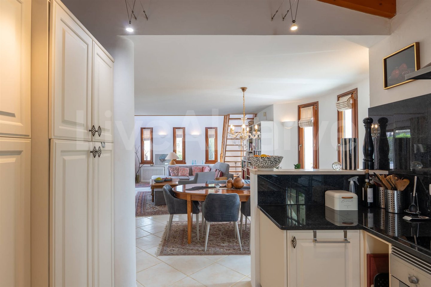 Eine geräumige Diele führt zu einem offenen Wohn- und Essbereich, der mit einer voll ausgestatteten Küche verbunden ist und Raum für Geselligkeit und den täglichen Gebrauch schafft. Viel natürliches Licht und eine durchdachte Orientierung verstärken die Verbindung zwischen Innen- und Außenbereichen.