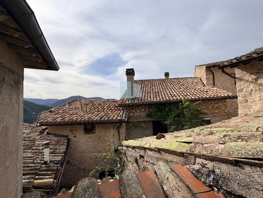 Im charakteristischen mittelalterlichen Dorf Caso in der Valnerina, Fraktion von Sant'Anatolia di Narco (Pg) und nur wenige Kilometer von Spoleto, Cascia und Norcia entfernt, eingebettet in einen authentischen und eindrucksvollen Kontext, der für seine Langobardenburg und die atemberaubenden Aussichten auf die umliegenden Berge bekannt ist, bieten wir zum Verkauf ein hübsches zweigeschosssiges Haus mit herrlicher Panoramaaussicht auf die umliegenden Berge und auf das Dorf.