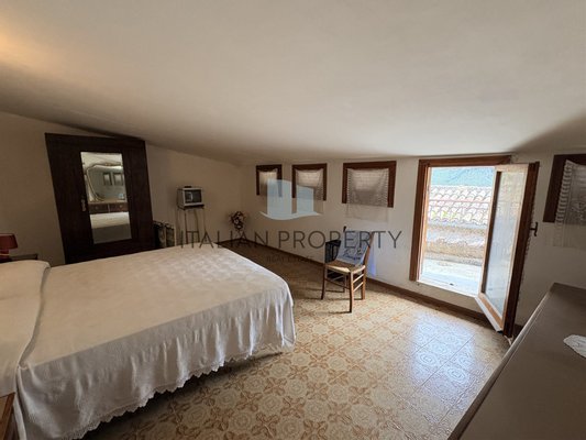 Zweites Obergeschoss: Schlafbereich mit zwei Schlafzimmern, einem Bad und einer panoramischen Terrasse, perfekt, um den offenen Blick und die Ruhe des Dorfes zu genießen